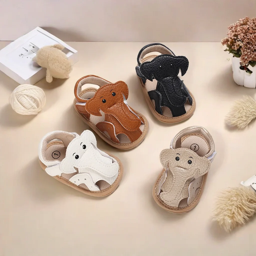 Cute Elephant Pattern Summer Casual Baby Sandals With Headband Anti Kick And Anti Slip Soft Sole Baby First Walking Shoes
