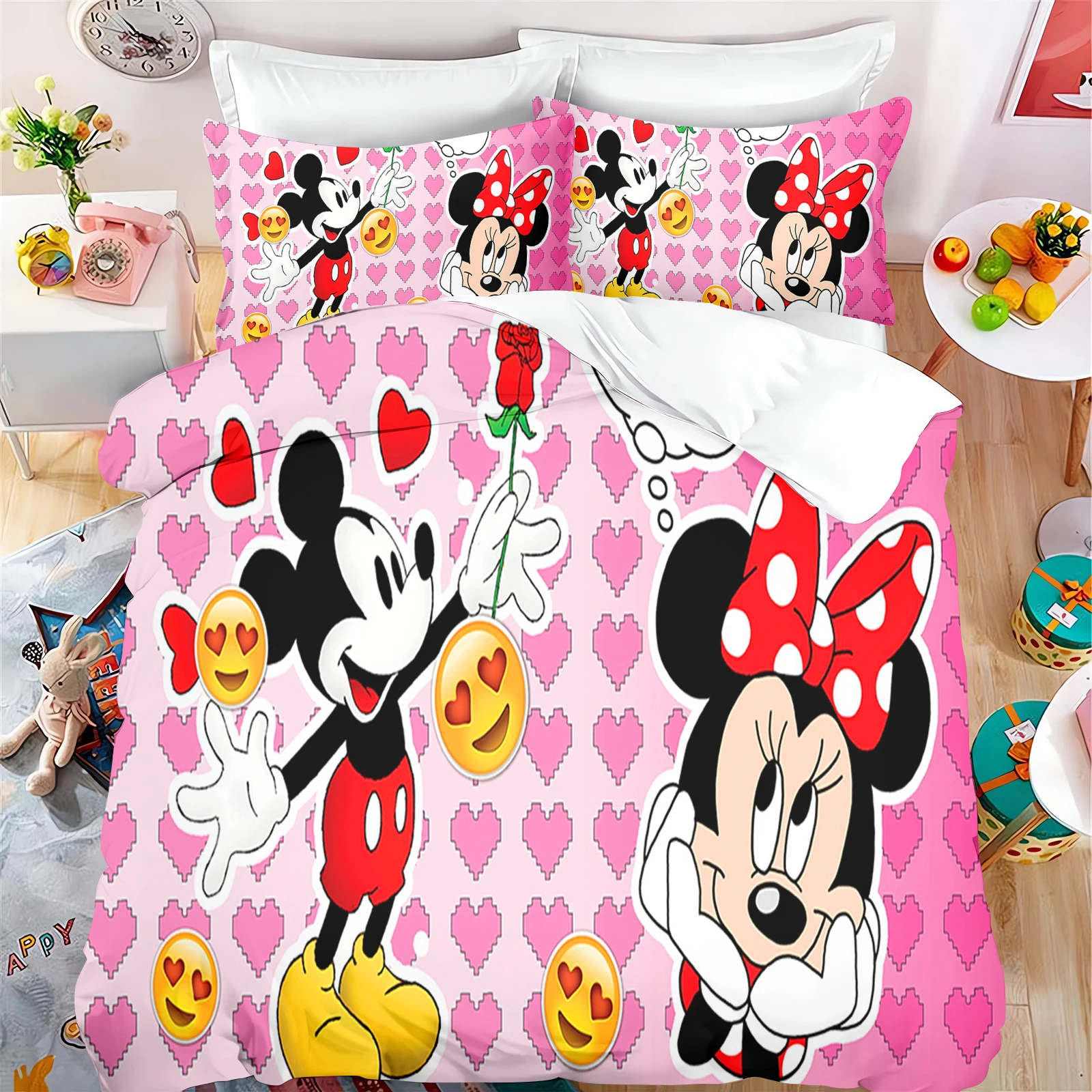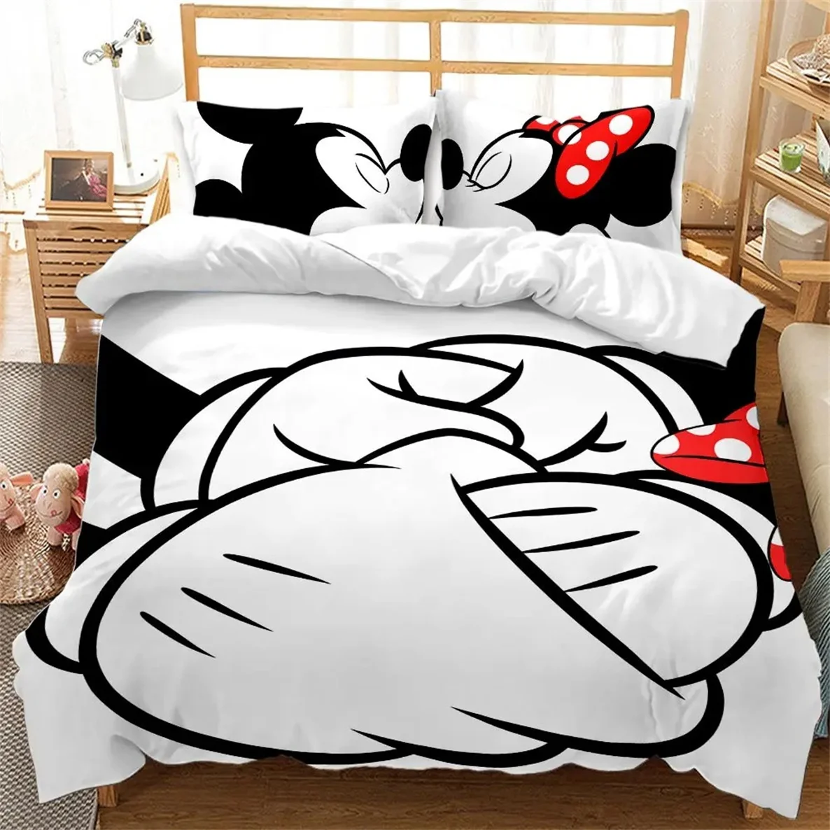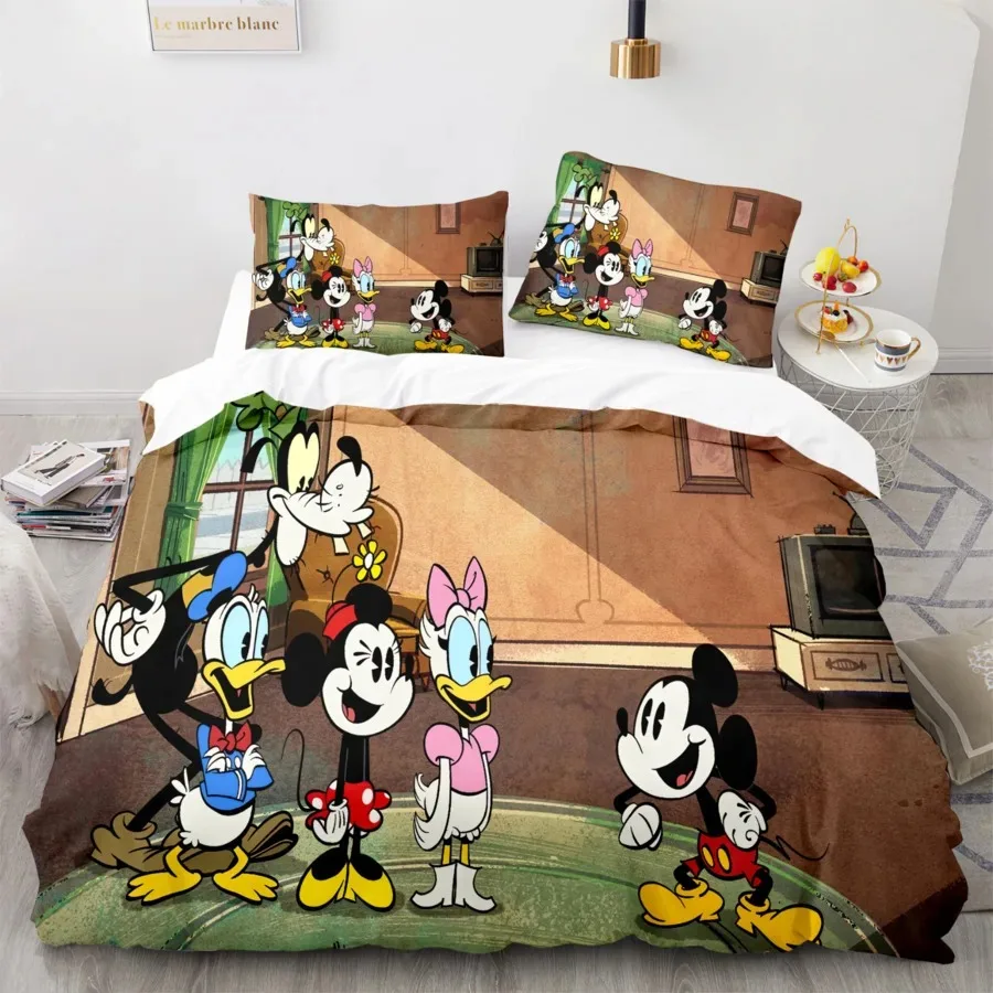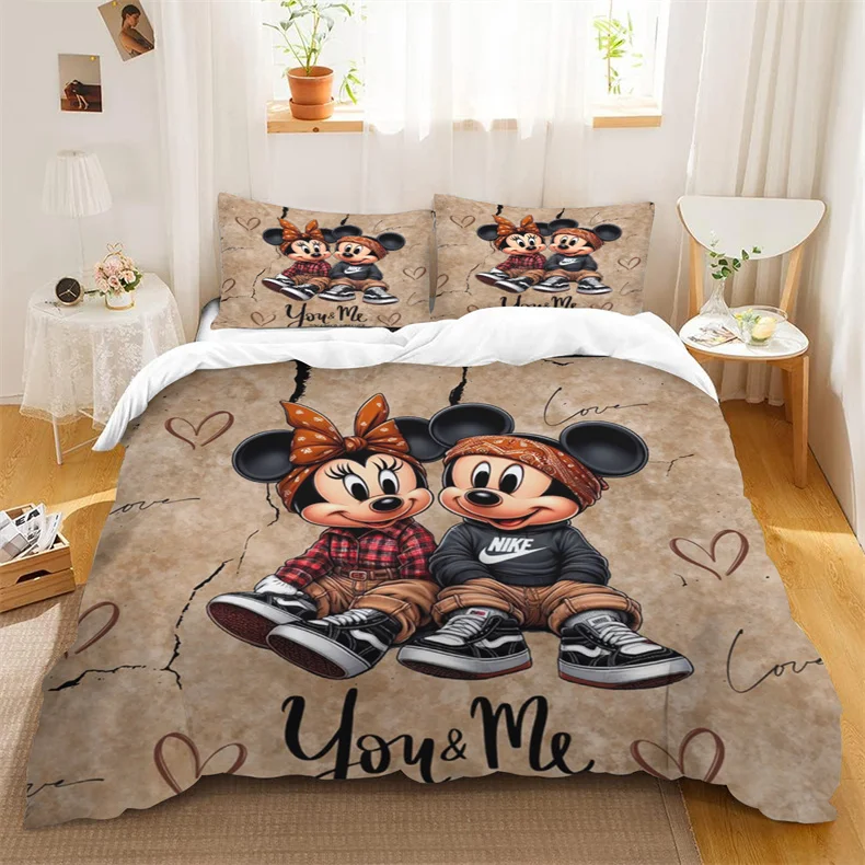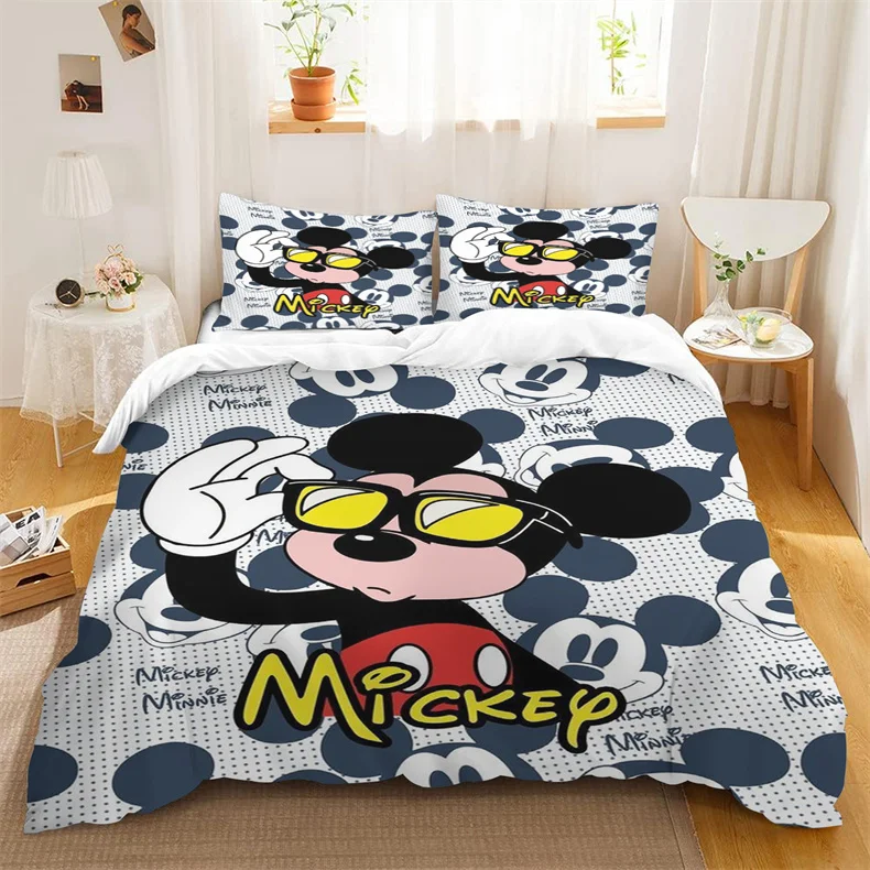 Cute Mickey Minnie Mouse Pattern Bedding Sets Comforter Cover Bed Cover Duvet Cover Pillow Case 2-3 Pieces Sets Kids Adult Size
