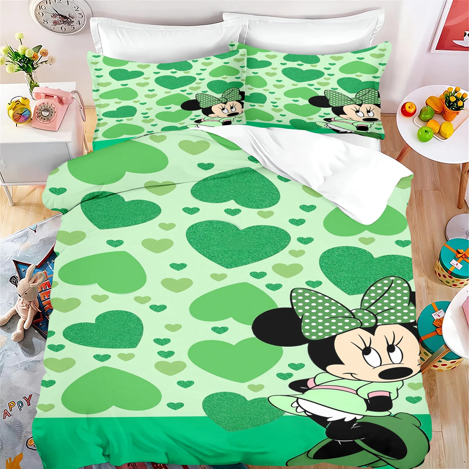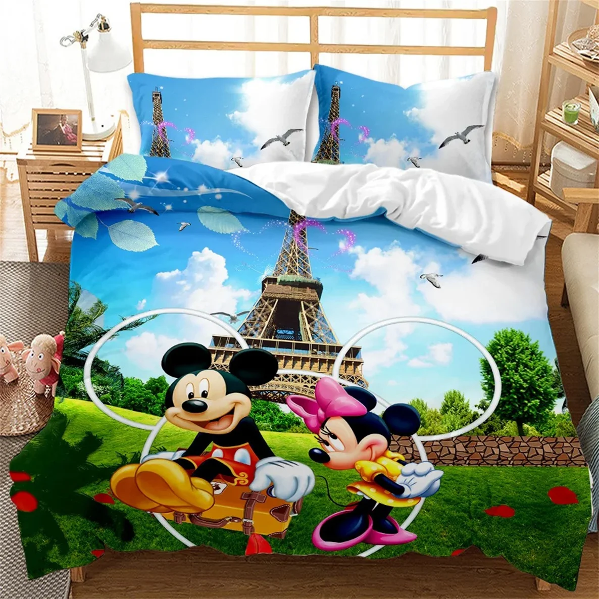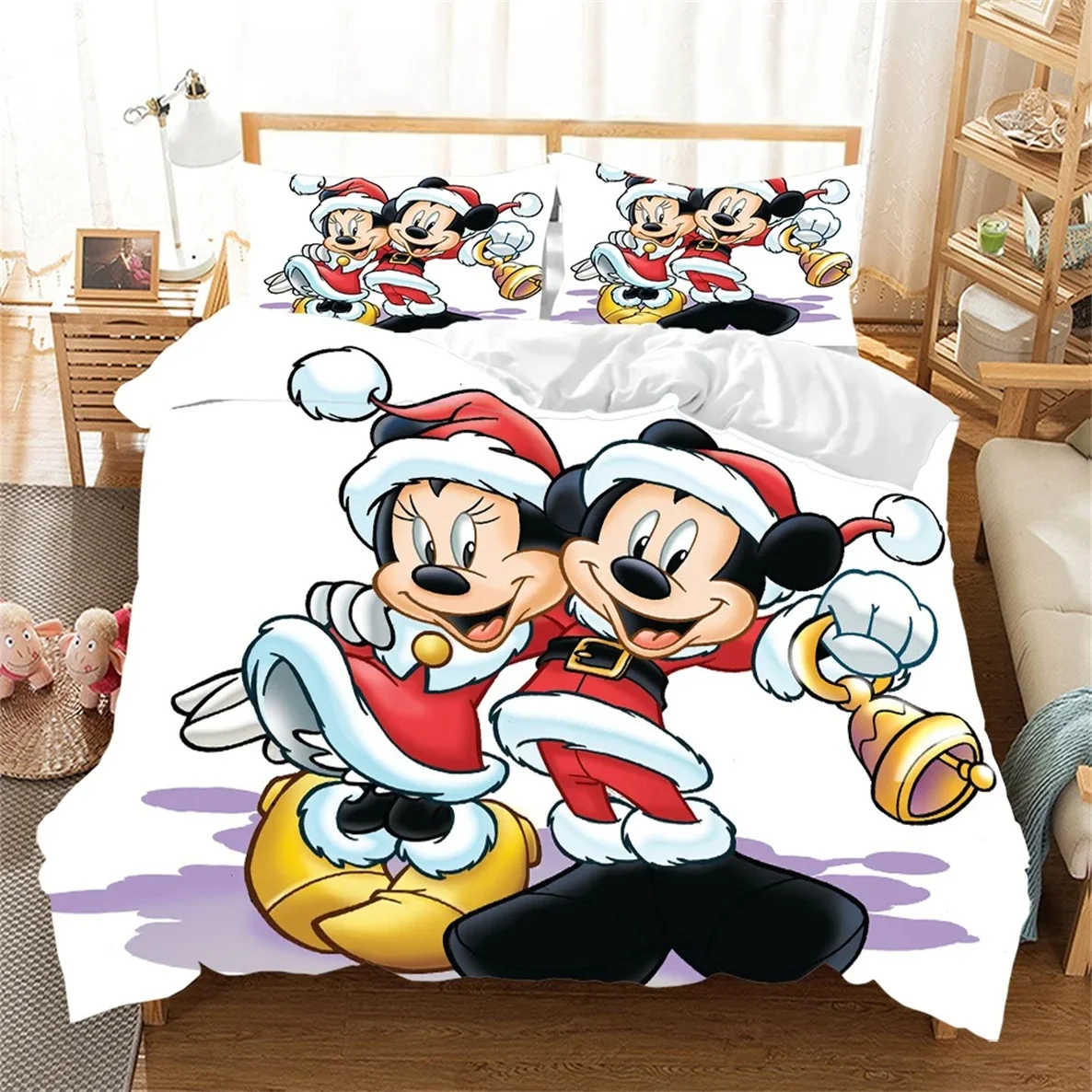 Cute Mickey Minnie Mouse Pattern Bedding Sets Comforter Cover Bed Cover Duvet Cover Pillow Case 2-3 Pieces Sets Kids Adult Size