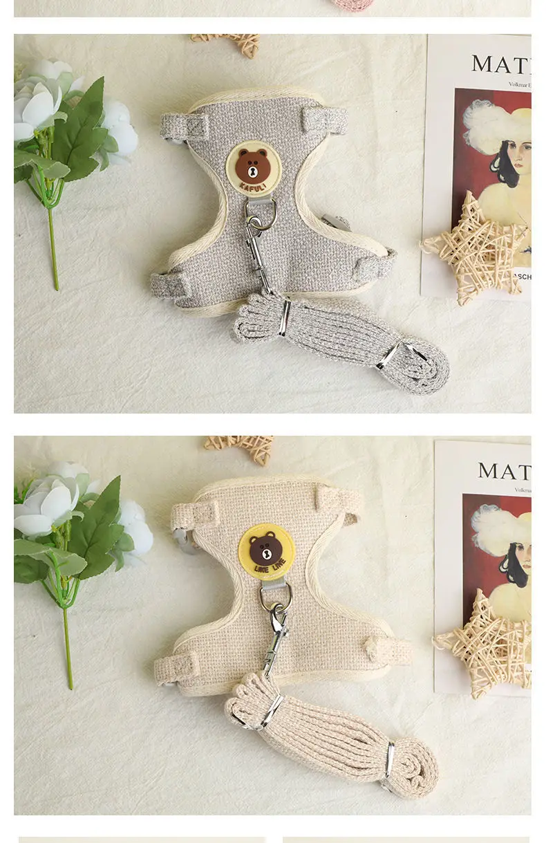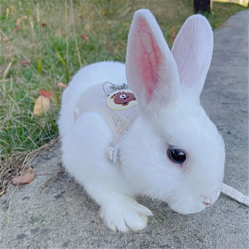 Cute Rabbit Harness Leash Set Bunny Soft Padded Dog Vest Small Puppy Carrier Teddy Bear Cat Collar Little Pet Walking