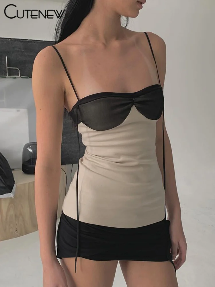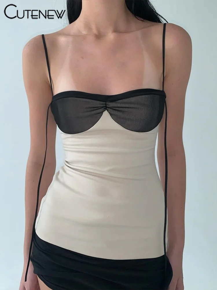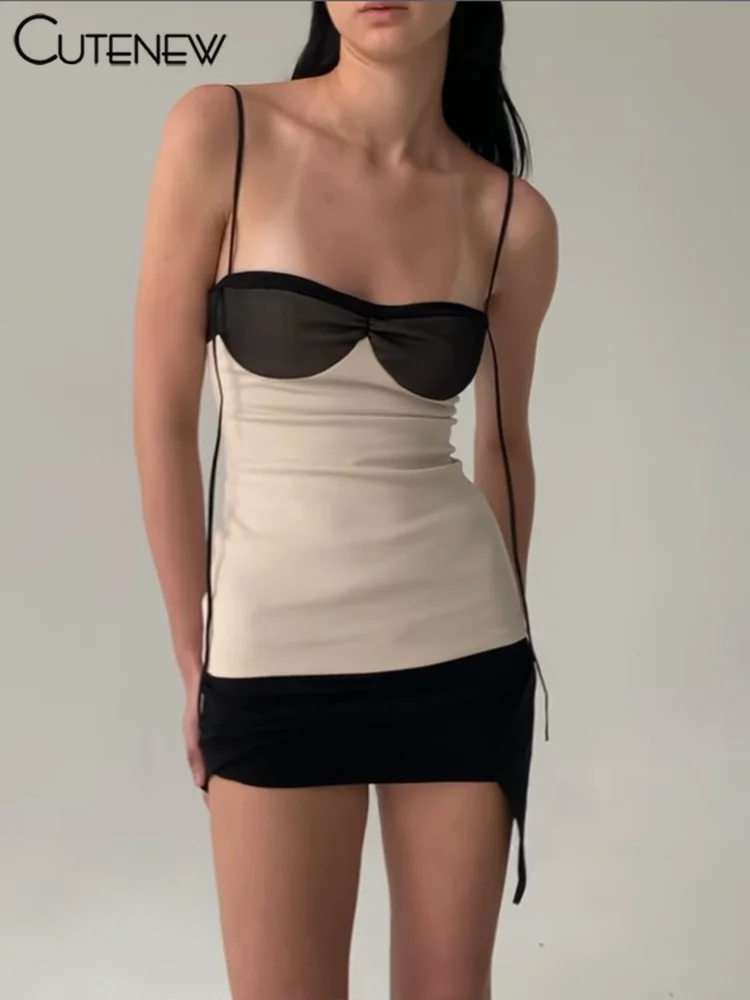 Cutenew Panelled Women Mini Dress Concise Tassel Patchwork Wrapped Chest Irregular Backless Super-Short Vestido Trend Streetwear