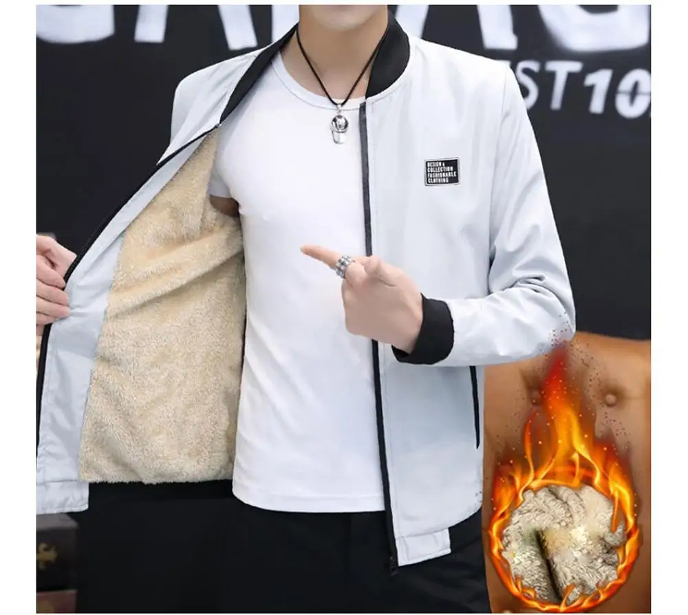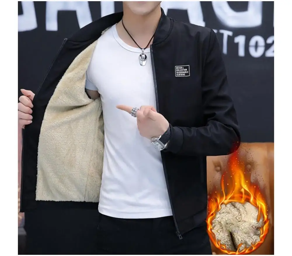 CW Men's Bomber Zipper Jacket Winter Male Fleece Warm Coats Casual Streetwear Hip Hop Slim Fit Pilot Jackets Mens Clothing
