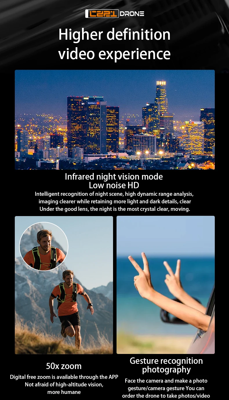 CZ21 Night Vision Drone Liftable OA Head Professional HD 8K ESC Triple Gimbal Camera Optical Flow Brushless Toy Drones FPV UAV