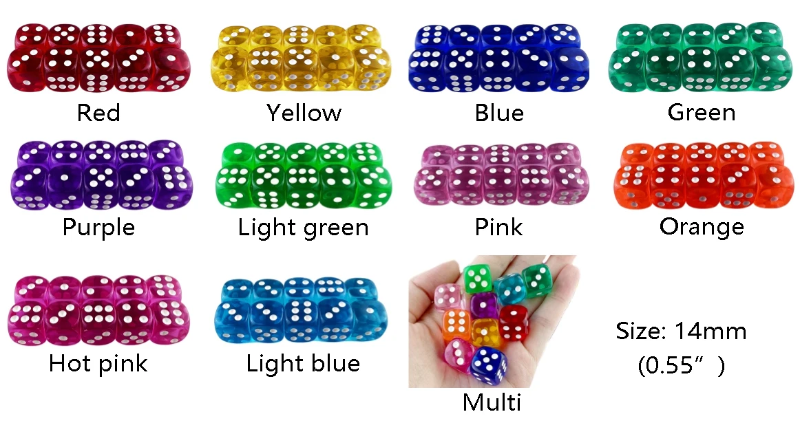 D6 Dice Set, 14mm Transparent Dice for Puzzle Making, Crafts and Classroom, Set of 10