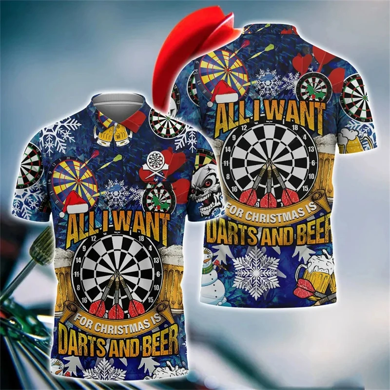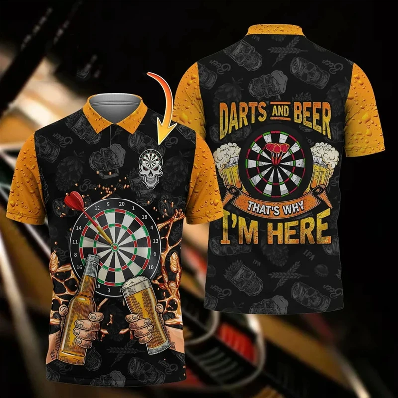 Darts Turntable Graphic Short Sleeve Polo Shirts For Men Clothes Casual Party Lapel POLO Shirt Fan Of Knives Club Team Male Tops