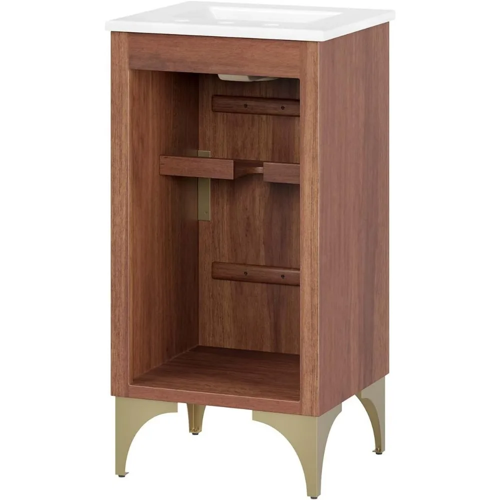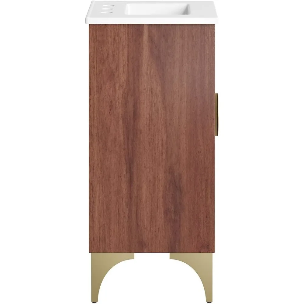 Daylight Bathroom Vanity Cabinet with Ceramic Sink Basin, 18 Inch, White Walnut
