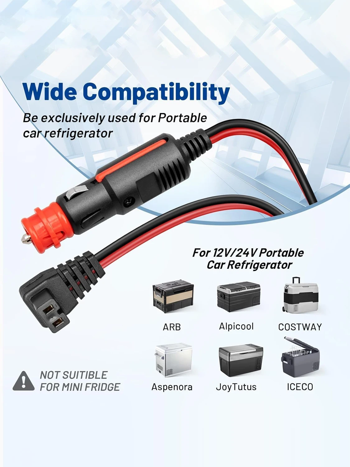 【Wide Compatibility】This Power Supply Cable is exclusively special used for Portable car refrigerator, fits for Alpicool, Bodega, Euhomy, BougeRV, ARB, Dometic, ICECO, Setpower, JoyTutus and more. (NOT SUITIBLE for mini fridge)