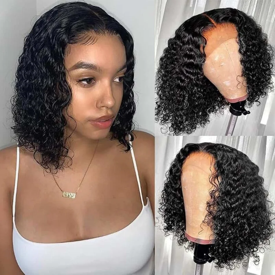 Deep Wave 4×4 Lace Front Wigs for Women Brazilian Bob Wig 13×4 Lace Frontal Short Wigs Curly Short Human Hair Pre Plucked