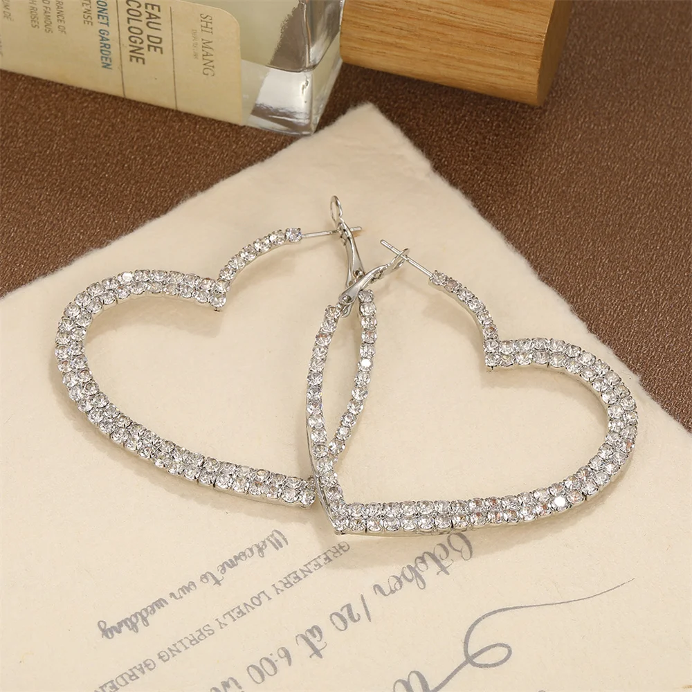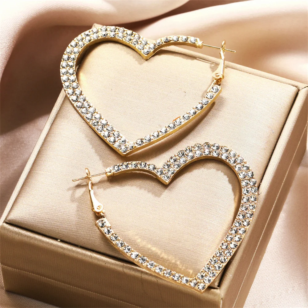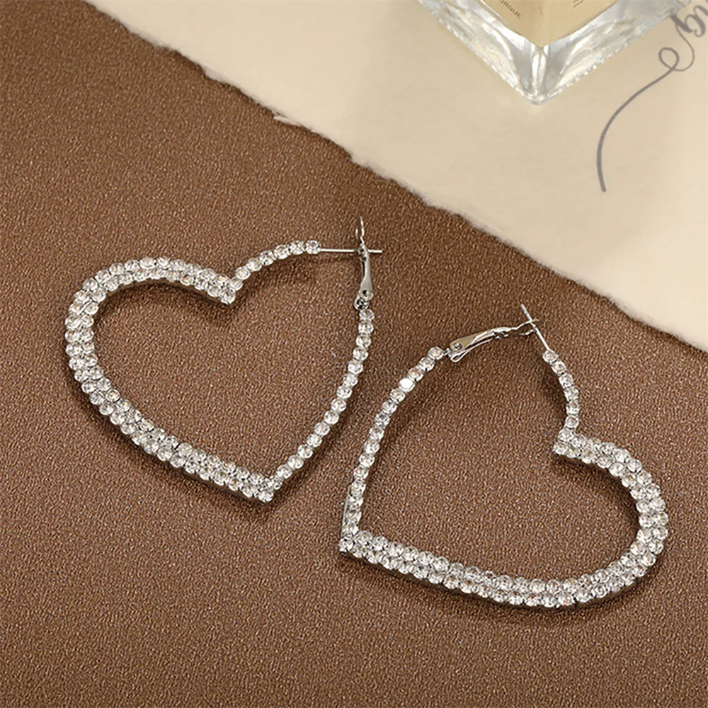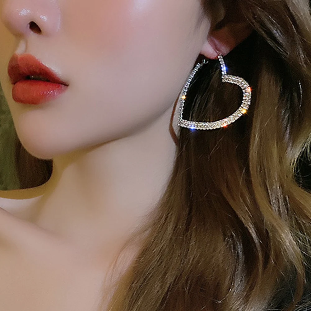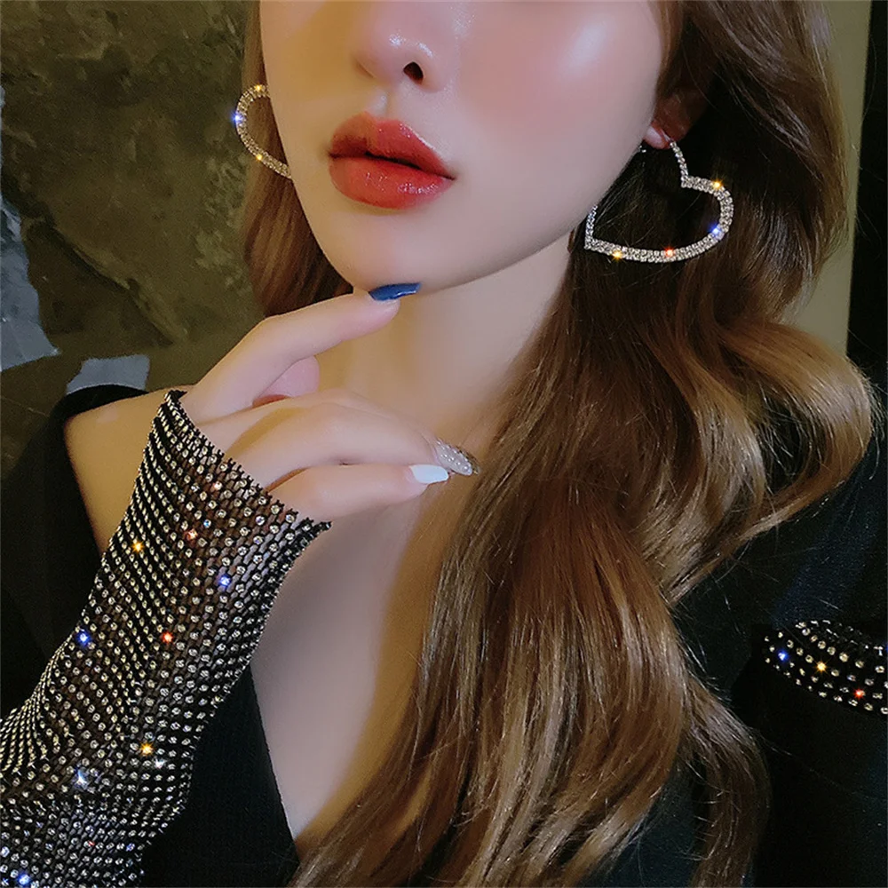 Delicated Shiny Full Crystal Rhinestones Heart Hoop Earrings for Women Girls Personality Banquet Earring Anniversary Jewelry