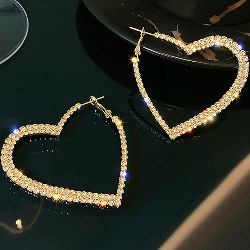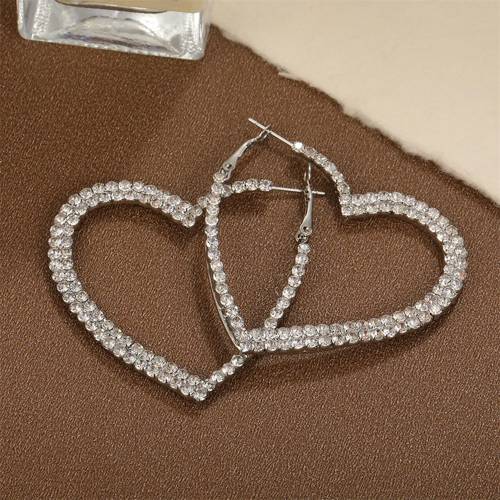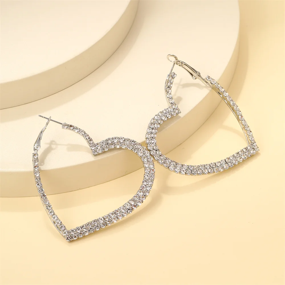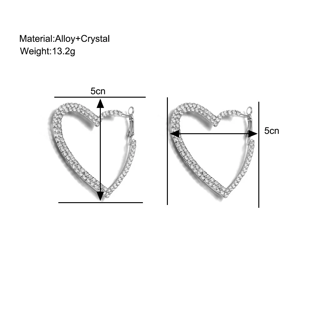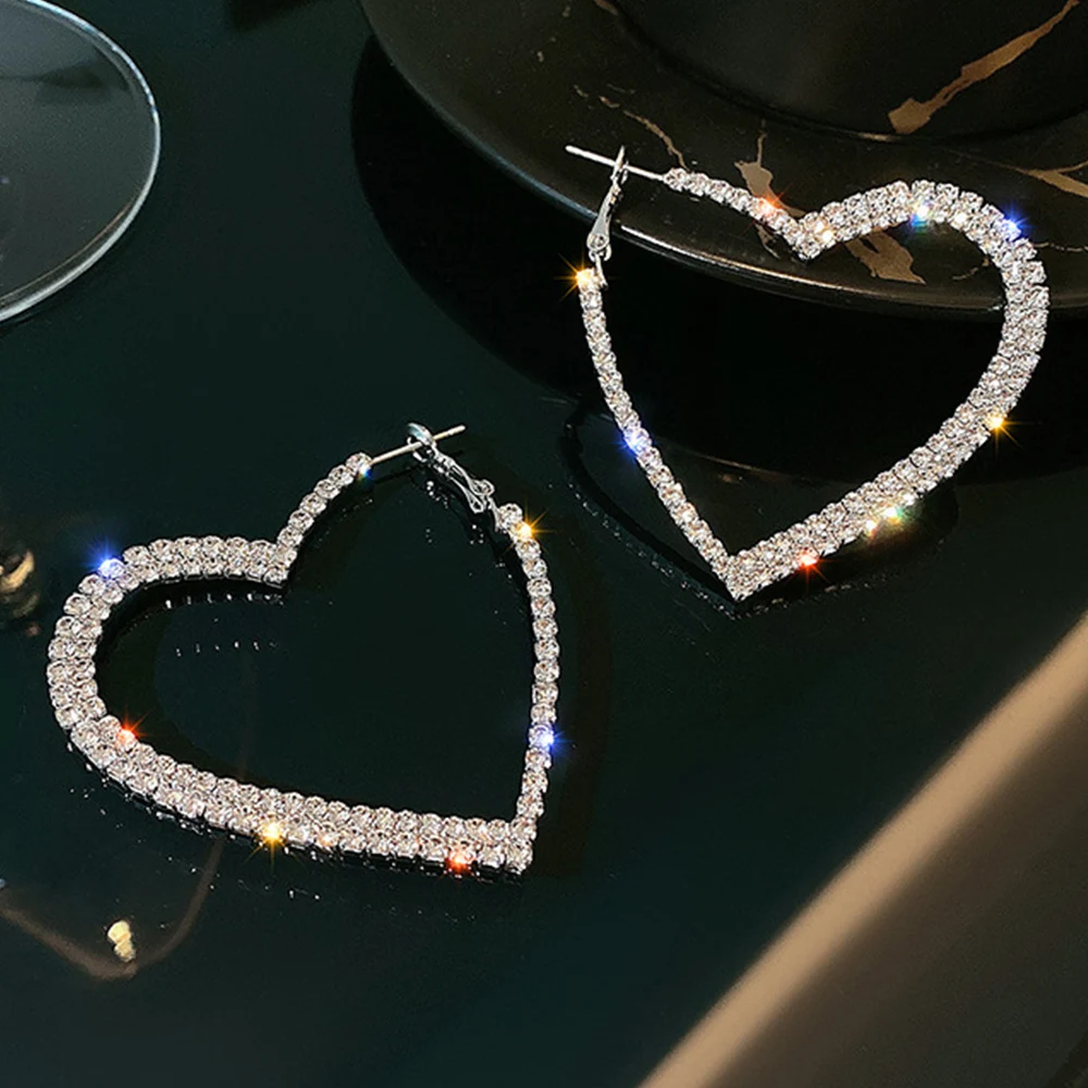 Delicated Shiny Full Crystal Rhinestones Heart Hoop Earrings for Women Girls Personality Banquet Earring Anniversary Jewelry
