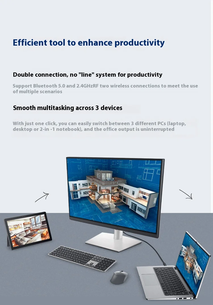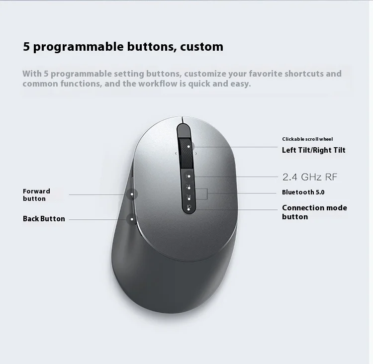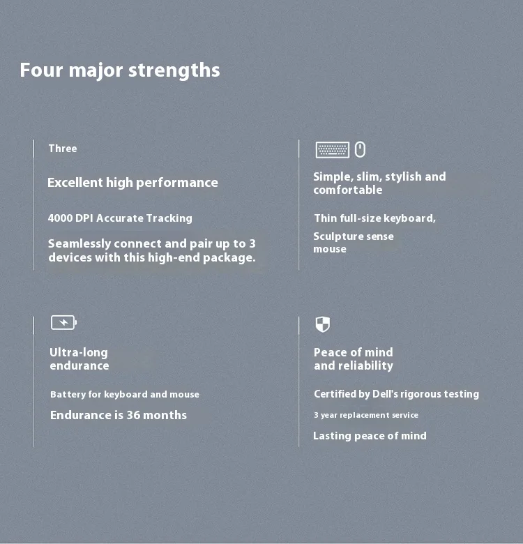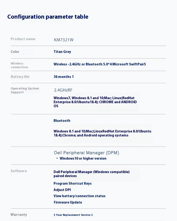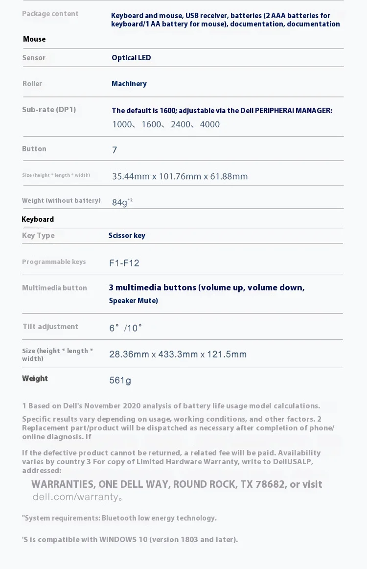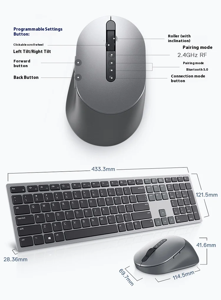Dell Wireless Keyboard and Mouse Set Bluetooth Office Set Wireless 2.4G Transmission Wireless Bluetooth Dual-mode Set KM7321W
