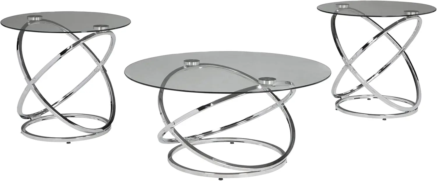 Design by Ashley Hollynyx Contemporary Round 3Piece Occasional Table Set Includes Coffee Table and 2 End Tables Chrome