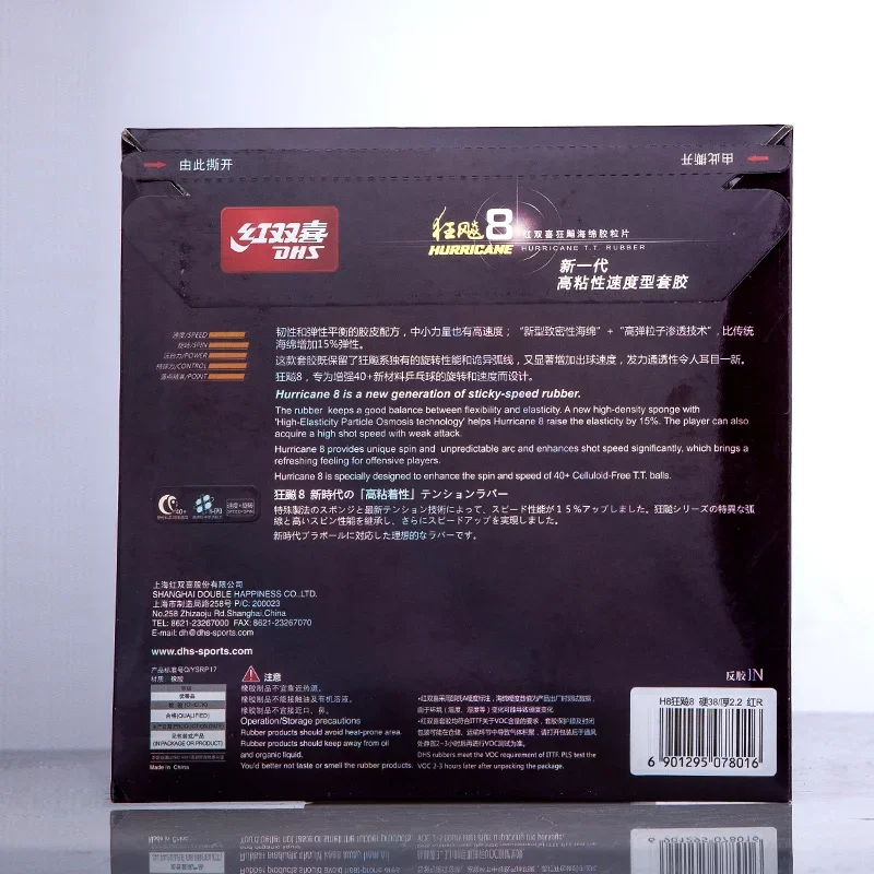 A new generation of high viscosity speed type rubber The toughness and elastic balance of the rubber formula, small and medium strength also has a high speed; "new compact sponge" + "high elastic particle penetration technology", 15% more elastic than the traditional sponge. This rubber retains the unique rotation of the hurricane system and the different loop, and significantly increases the speed of the ball, making the power permeability refreshing. Hurricane 8, designed to enhance the loop and speed of 40+ new material table tennis. Style: Fast break + Loop Thickness: 2.15/2.2 (mm) Hardness: 39/40