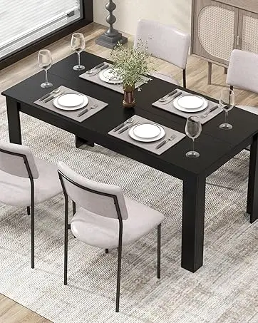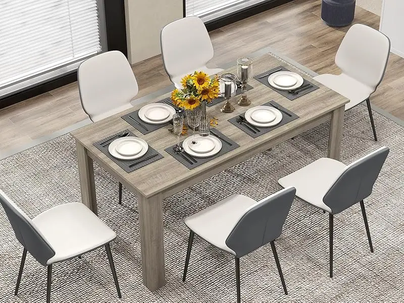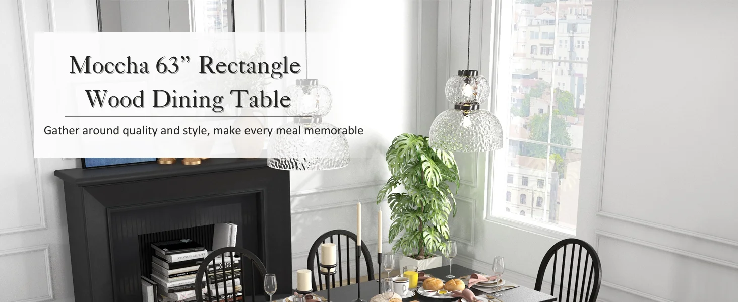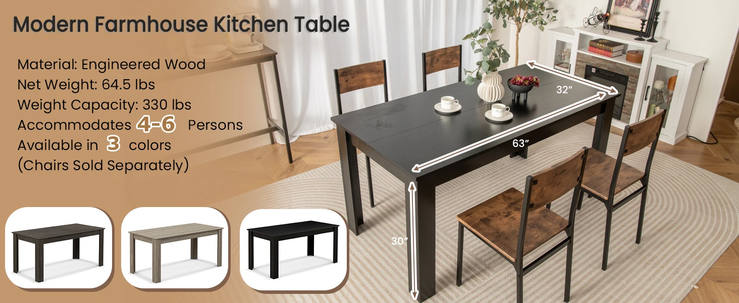 Dining Table for 4-6 People, 63″ Wood Rectangle Dinner Table, Modern Kitchen Table with L-Shaped Legs, 330lbs Weight Capacity, F