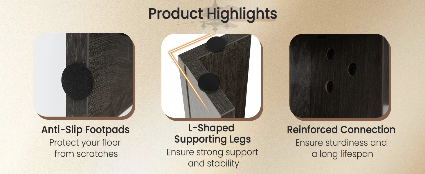 1 Spacious Tabletop 2 Artistic Wood Grain 3 Space-Saving Design