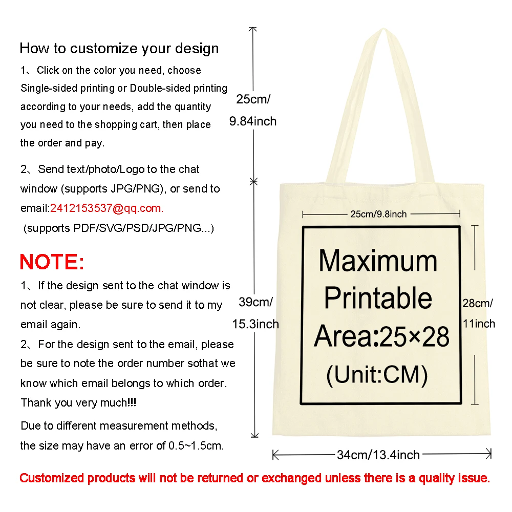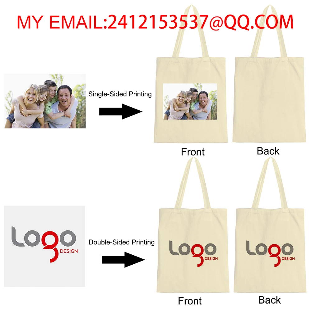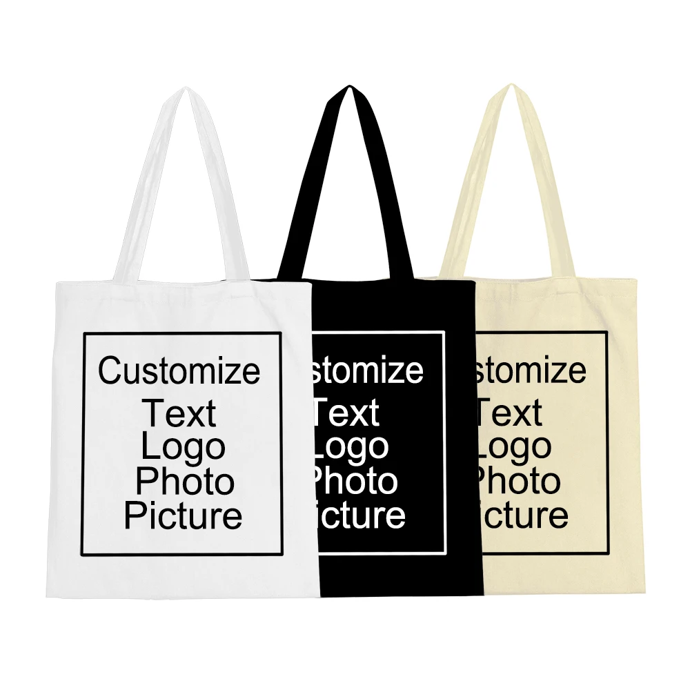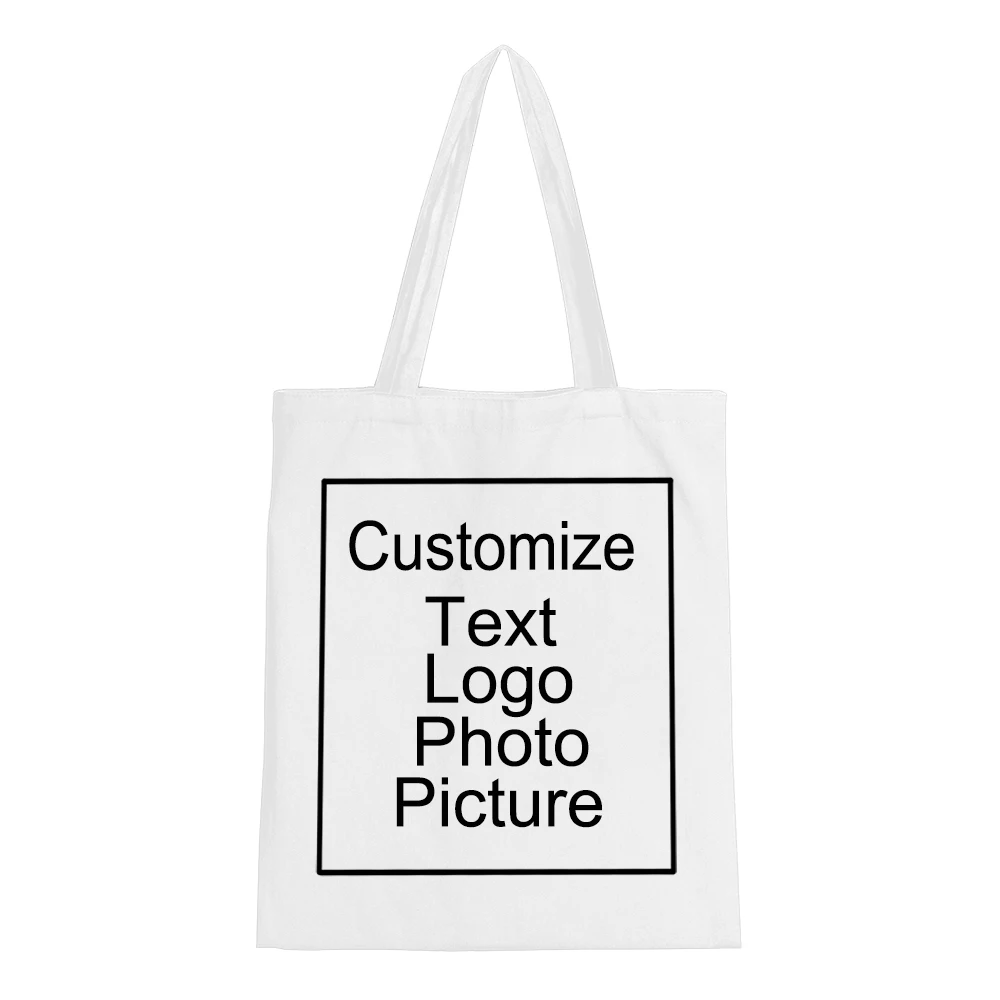 DIY Personal Customized Tote Bag Shopping Add Your Logo Print Original Design Fashion Travel Canvas Shoulder Bags Women Handbags