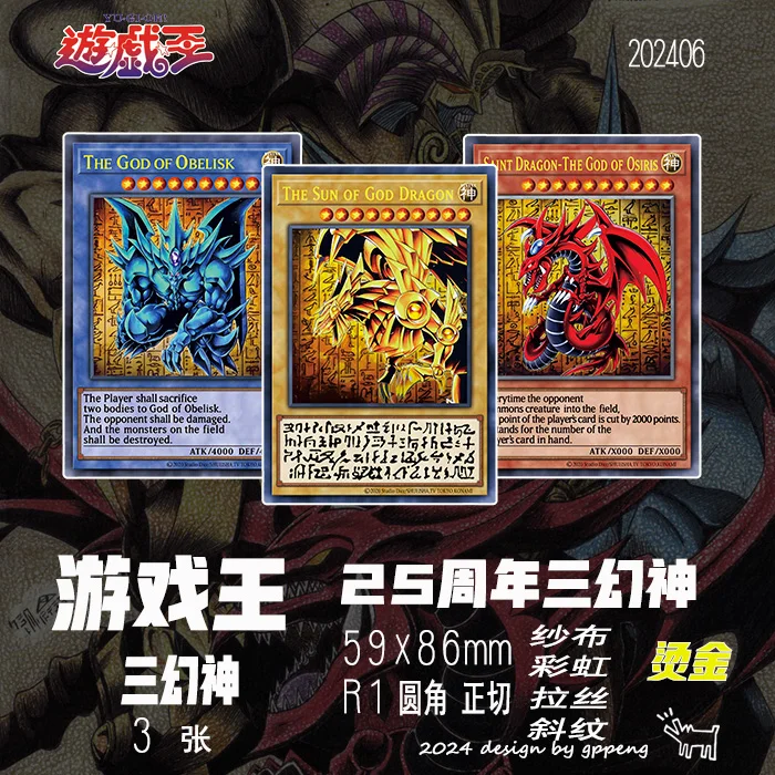 DIY Yu-Gi-Oh! Egyptian God 25th Anniversary 3PCS/Set Four Types of Flashes Anime Peripheral Game Collection Card Holiday Gift
