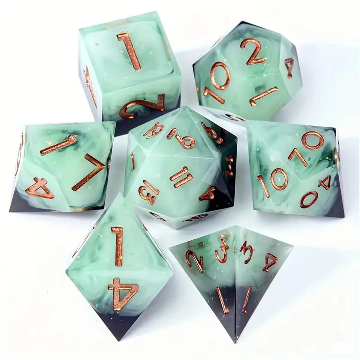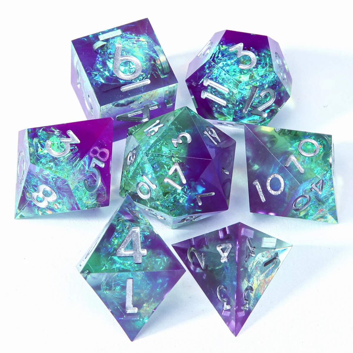 7Pcs Transparent Dice Set Double Color Flash Dot Starry Sky DND Dice for TRPG Cthulhu COC Table Board Game Numbers Dices Kit