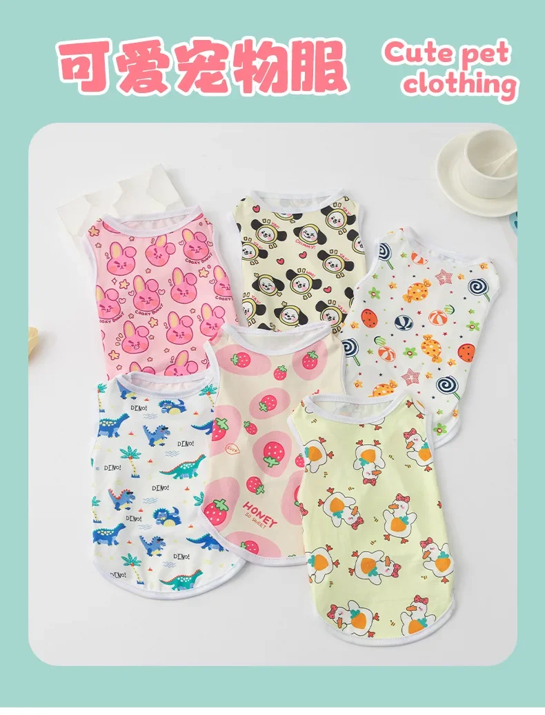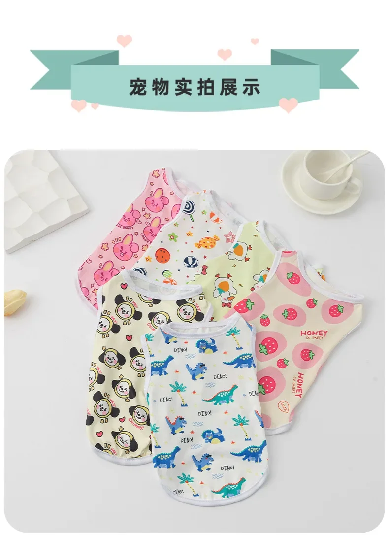 Dog New Cut Cartoon Print Vest Ventilate Pet Dog T-shirt Puppy Brand Shirt French Bulldog Chihuahua Small Medium Dog Clothes