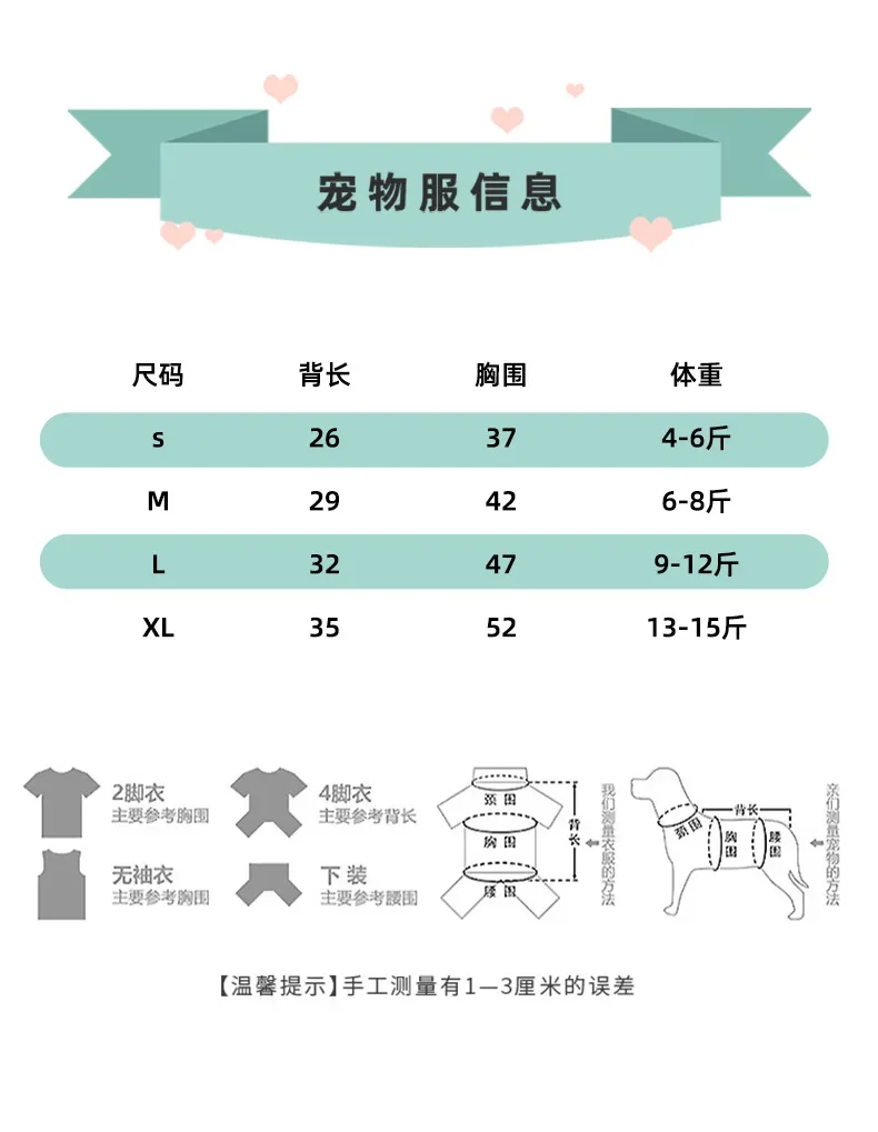 S=back length 26cm, bust 37cm, weight 0.5-1.5KG