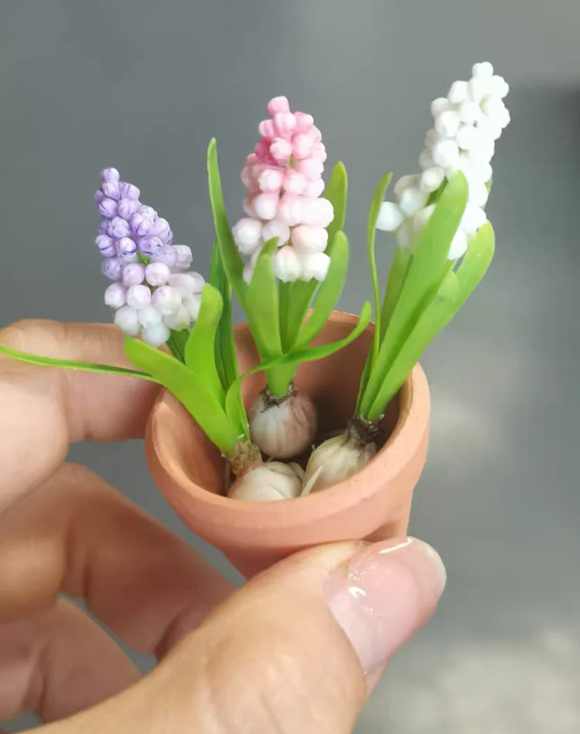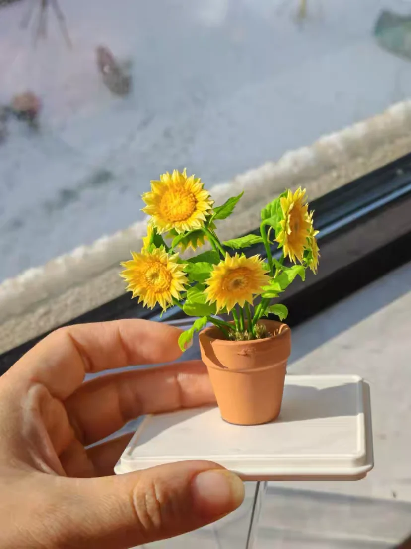 DollHouse Botanical Garden Accessories Clay Flowers Green Plant Miniature Hyacinth Flower Basket Hydrangea Rose Sunflower Potted