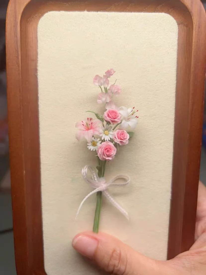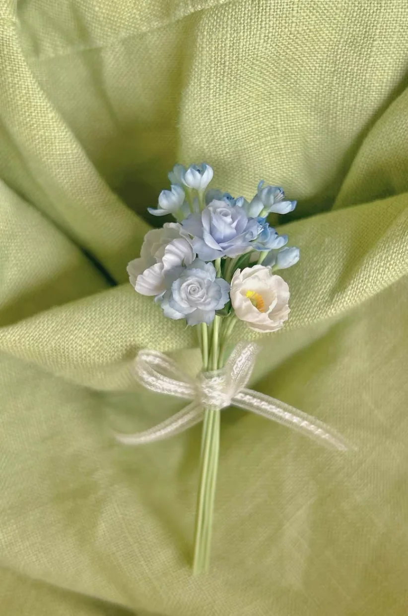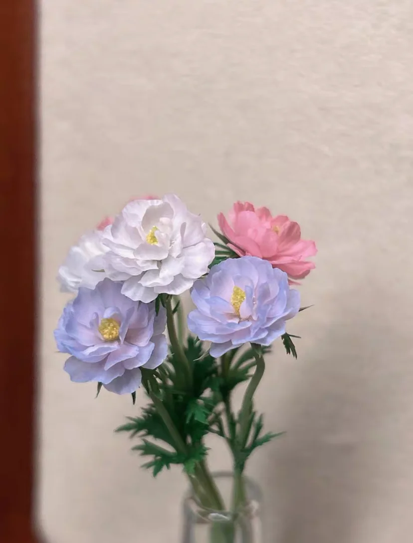 DollHouse Miniature Bouquet Clay Plum Anemone Peony Rose Blythe Toy Mini Wedding Party Decoration Bouquet Surprise Gift Bjd Doll