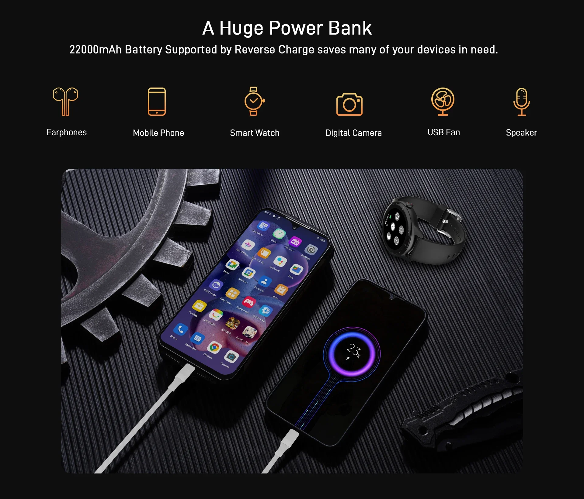 22000mAh Battery Supported by Reverse Charge saves many of your devices in need.