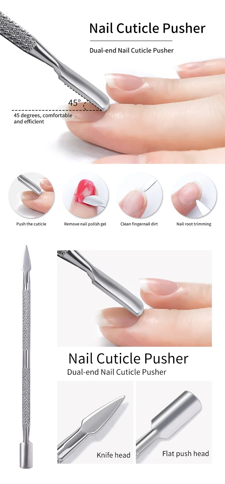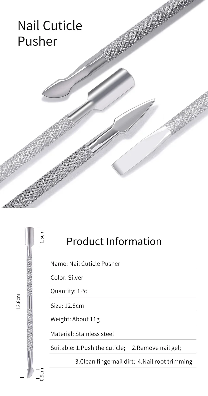 Double-ended Stainless Steel Cuticle Pusher Dead Skin Push Remover For Pedicure Manicure Nail Art Cleaner Care Tool