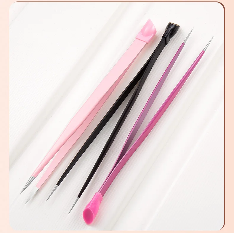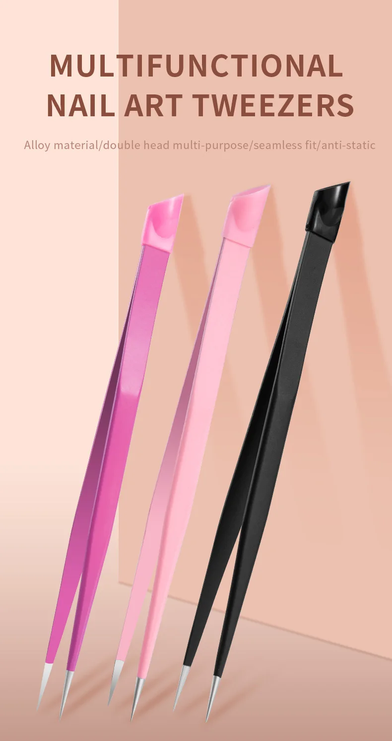 Double Headed Tweezers Multi-Use Tweezers Silicone Pressing Head Nail Clipping Tool Take Sticker Tape Crystal Manicure Tools