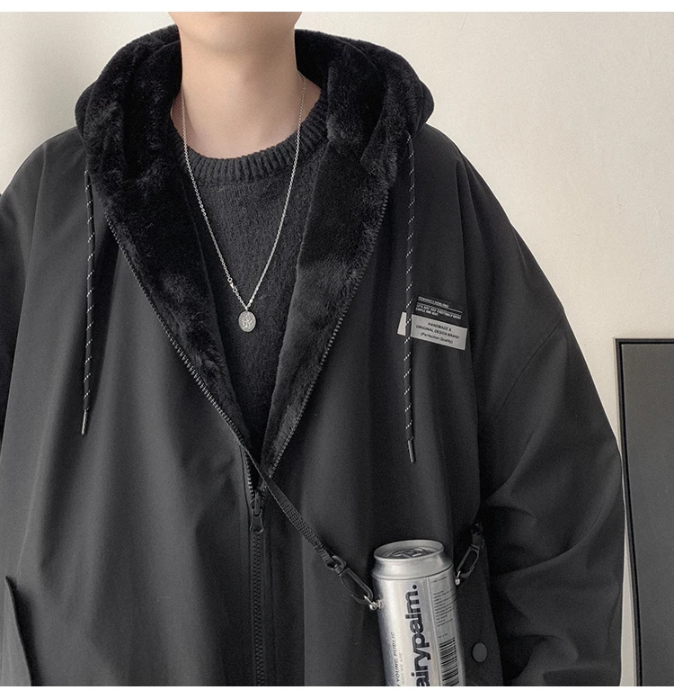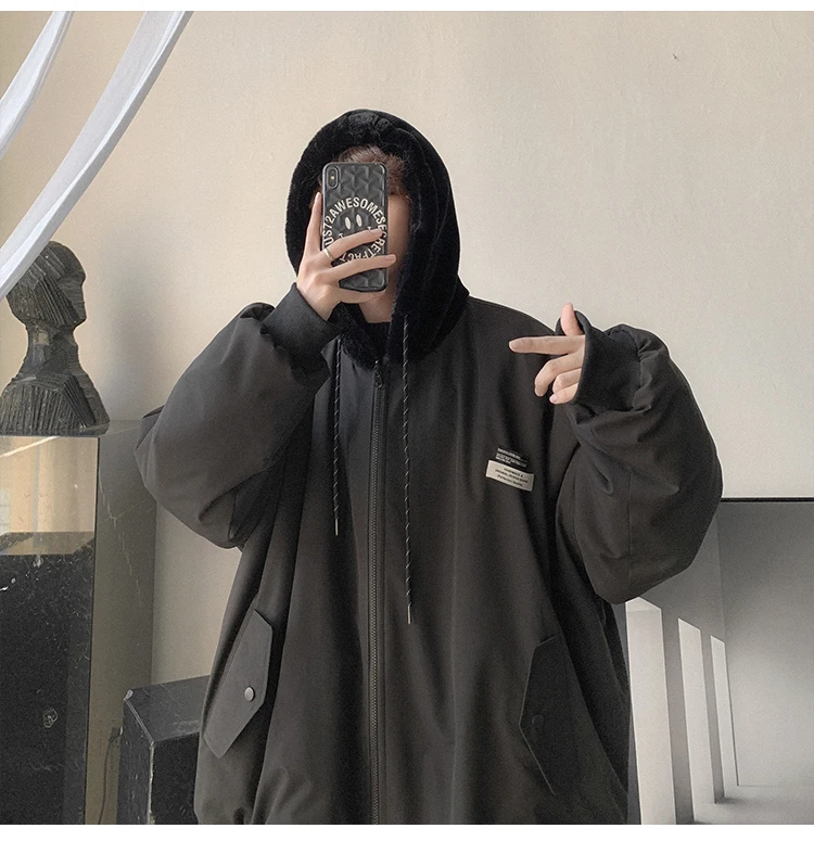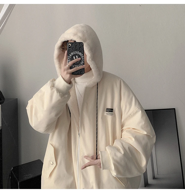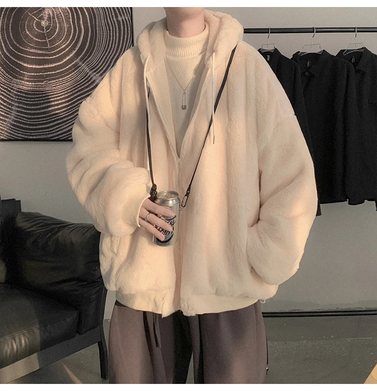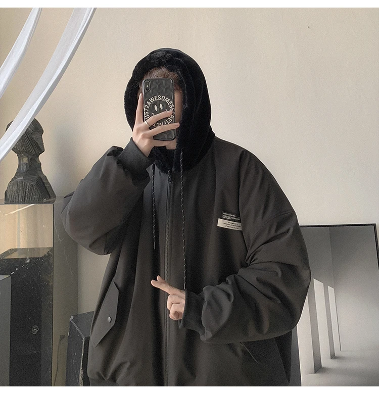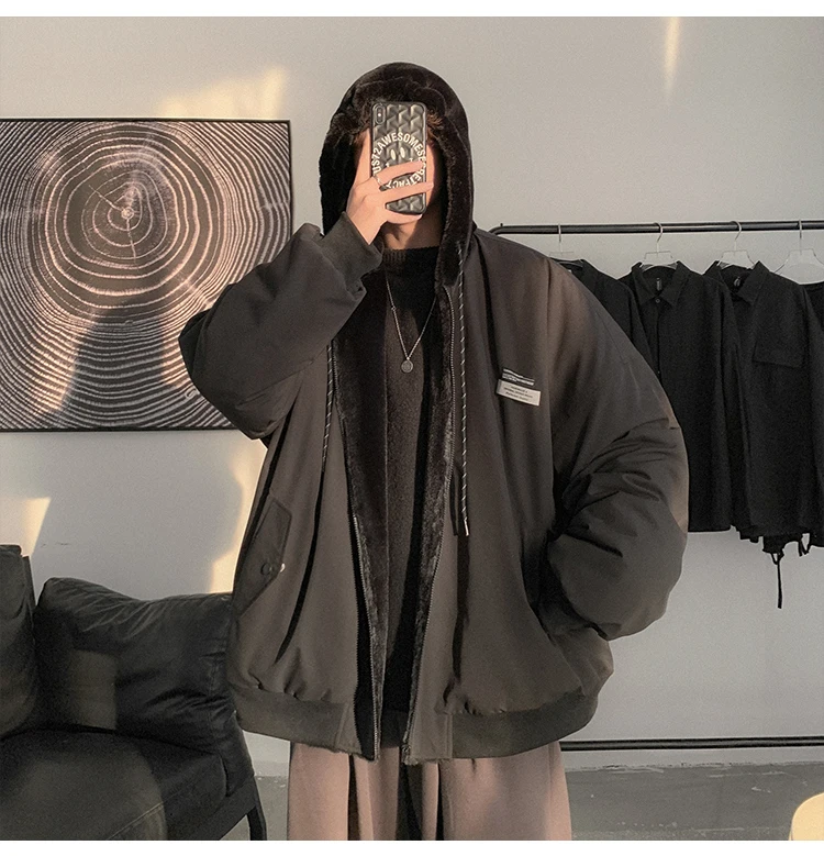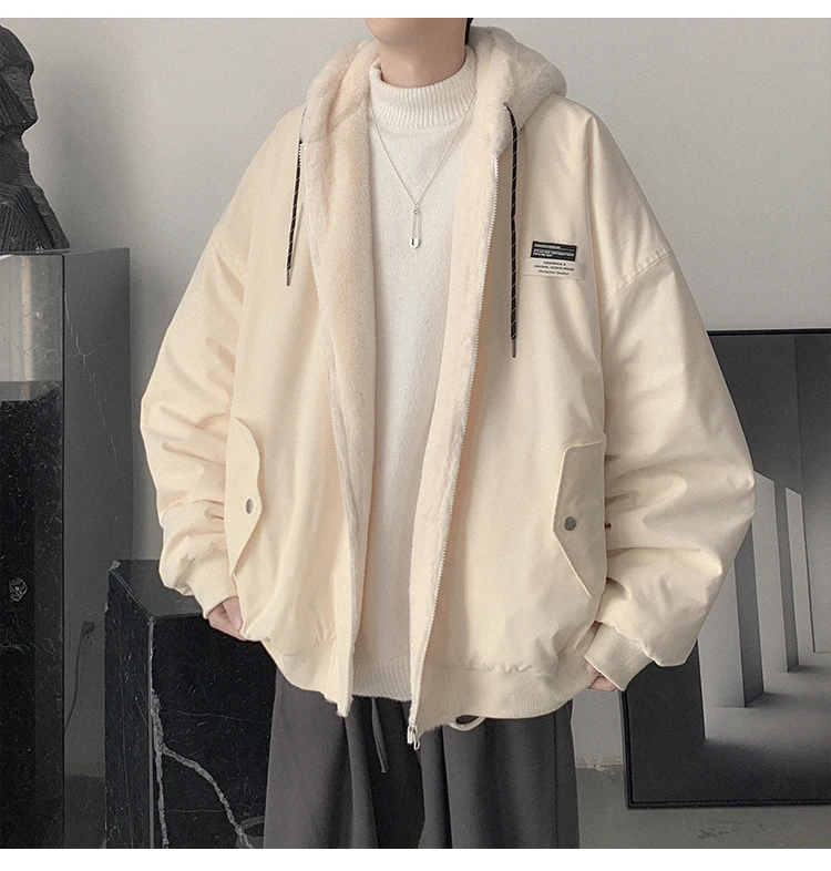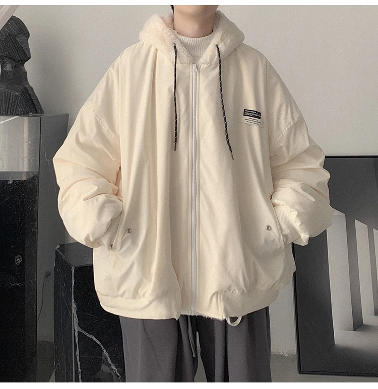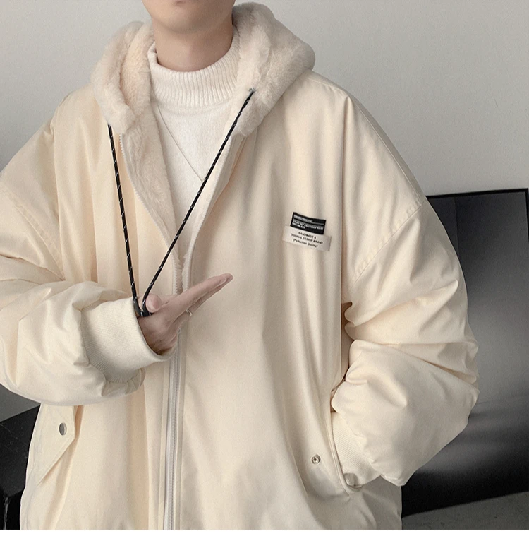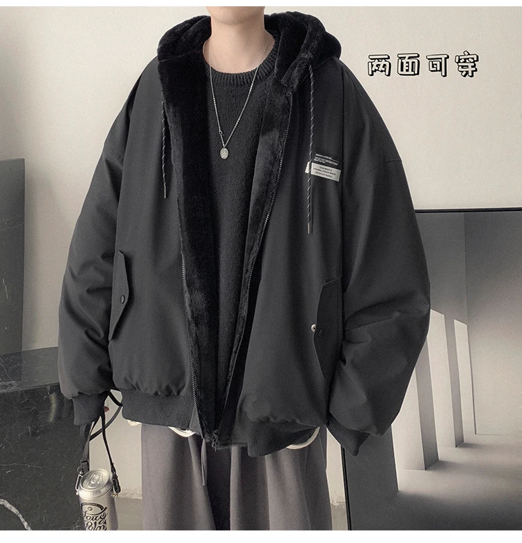 Double Sided Wear Lamb Wool Thickening Padded Jacket, Men’s Winter Solid Color Casual Fleece Warm Hooded Cotton-padded Clothes