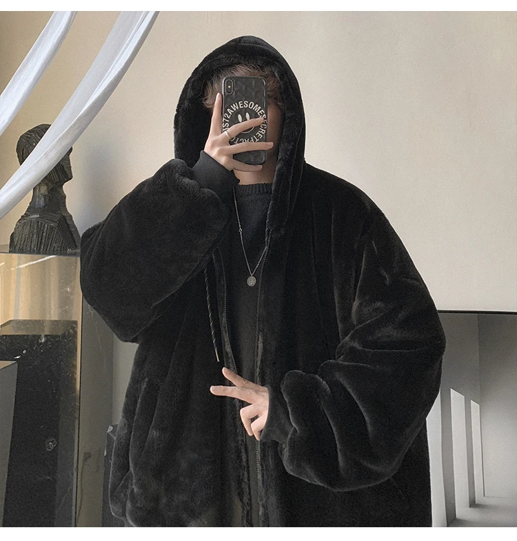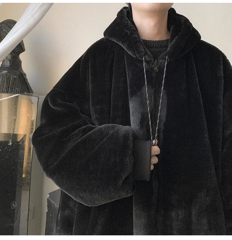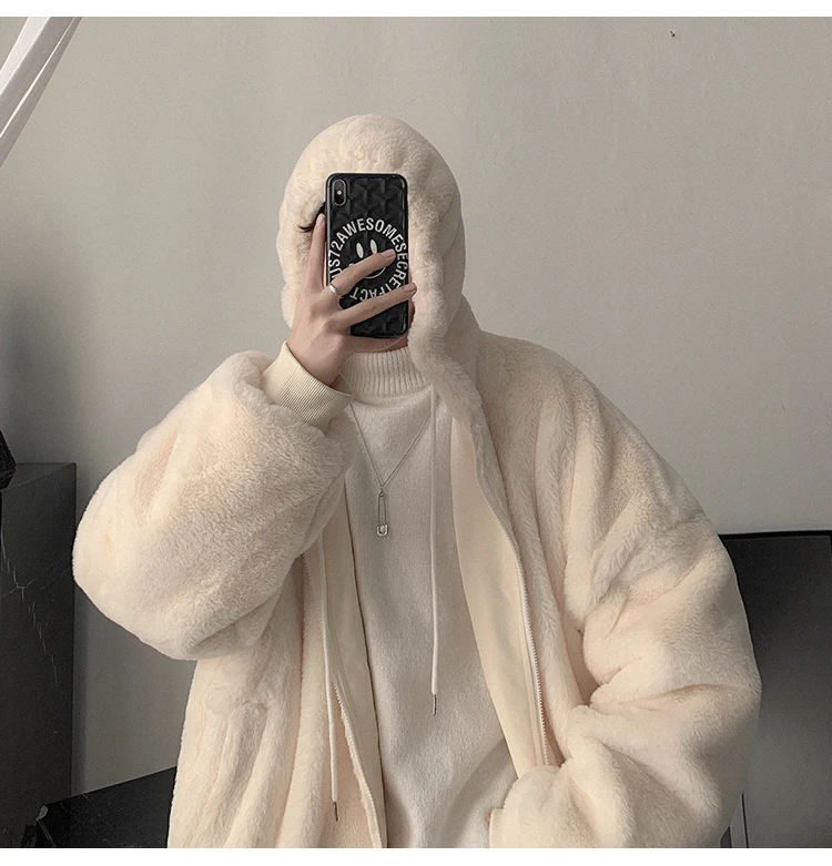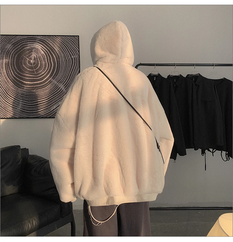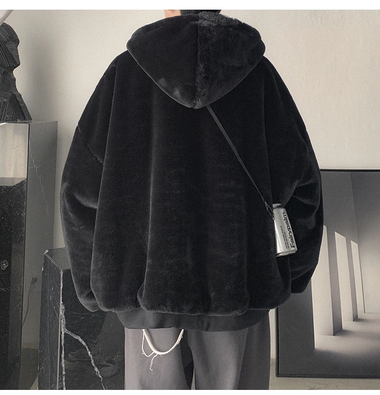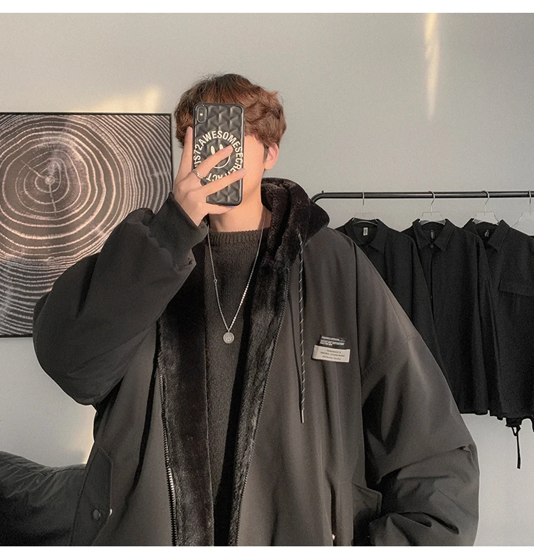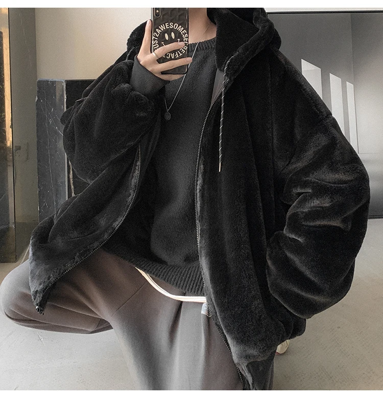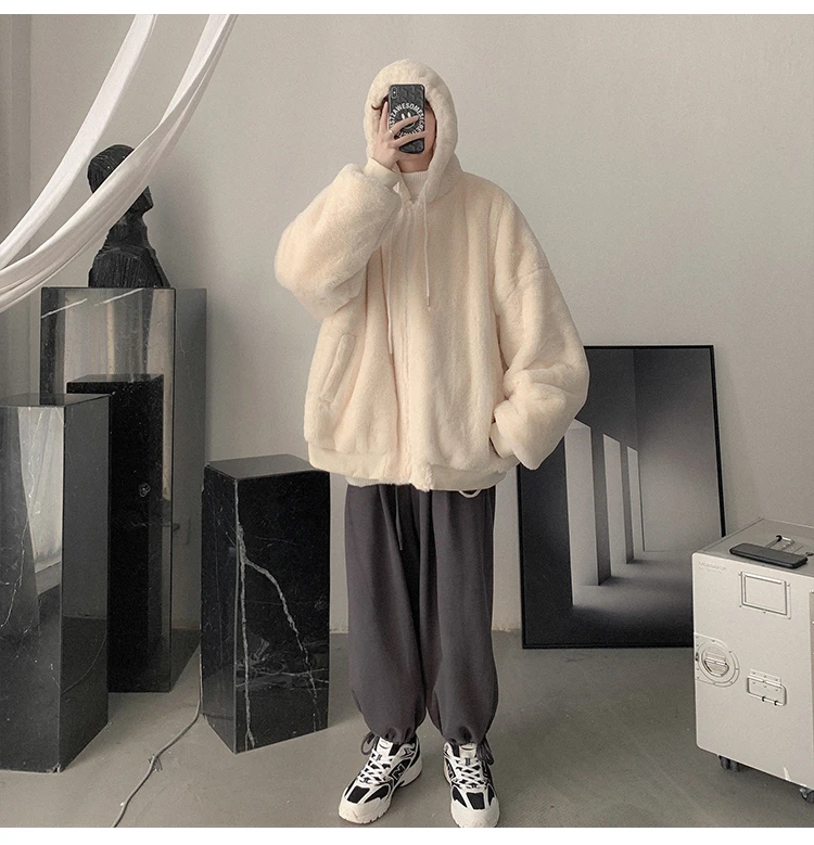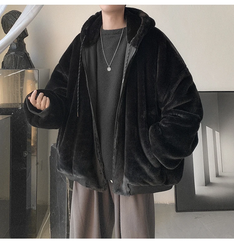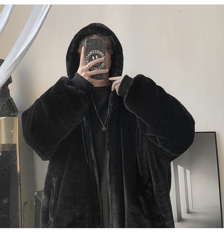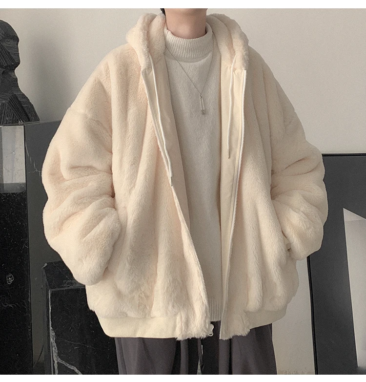 Double Sided Wear Lamb Wool Thickening Padded Jacket, Men’s Winter Solid Color Casual Fleece Warm Hooded Cotton-padded Clothes