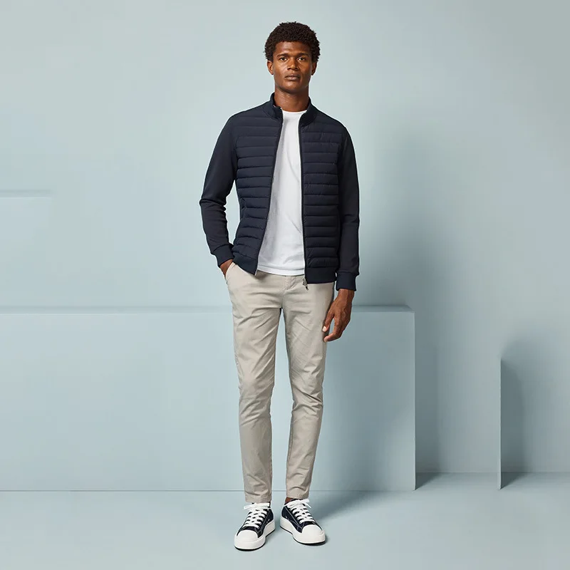 Down Jacket Lightweight Stand Up Collar Spliced Knit Jacket Autumn and Winter Jackets for Men Coats