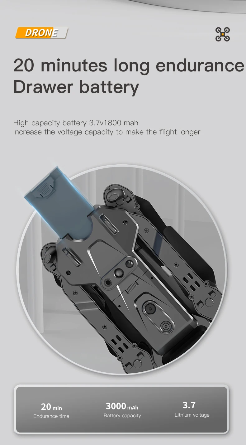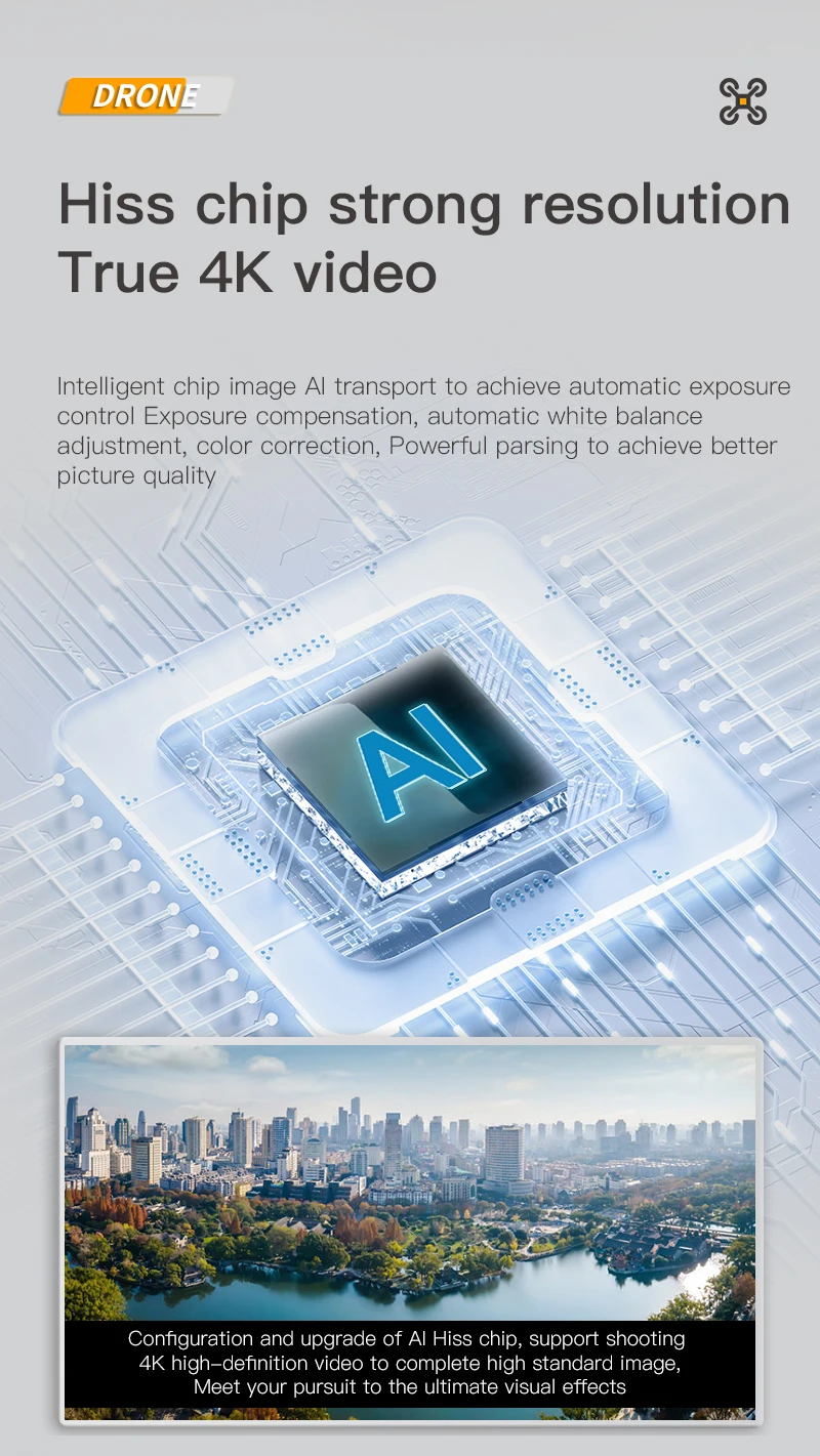 During flight, the drone automatically hovers steadily in real time,No throttle control height, easy to use