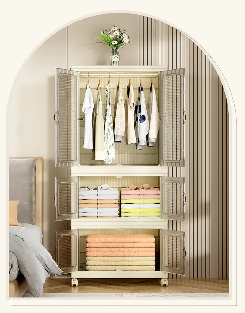Dustproof Wardrobe Storage Rack Household Multi-layer Wardrobe Partition Closet Cabinet High Capacity Storage Rack Folding Bins