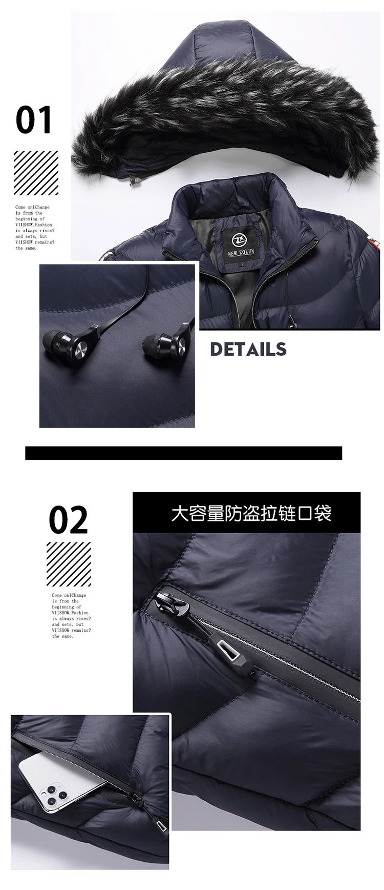 EAEOVNI Winter Jacket Men Fur Collar Warm Thick Parka Male Outerwear Thermal Wool Down Jacket Coats Fleece Hooded Puffer Jacket