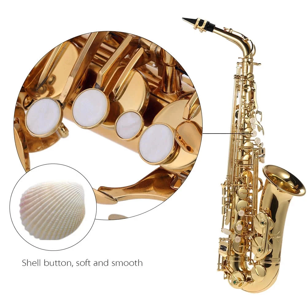 Eb Alto Saxophone Brass Lacquered Gold E Flat Sax 802 Key Type Woodwind Instrument with Brush Cloth Gloves Strap Case