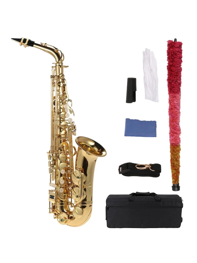 Eb Alto Saxophone Brass Lacquered Gold E Flat Sax 802 Key Woodwind Instrument with Cleaning Brush Cloth Gloves Strap Padded Case