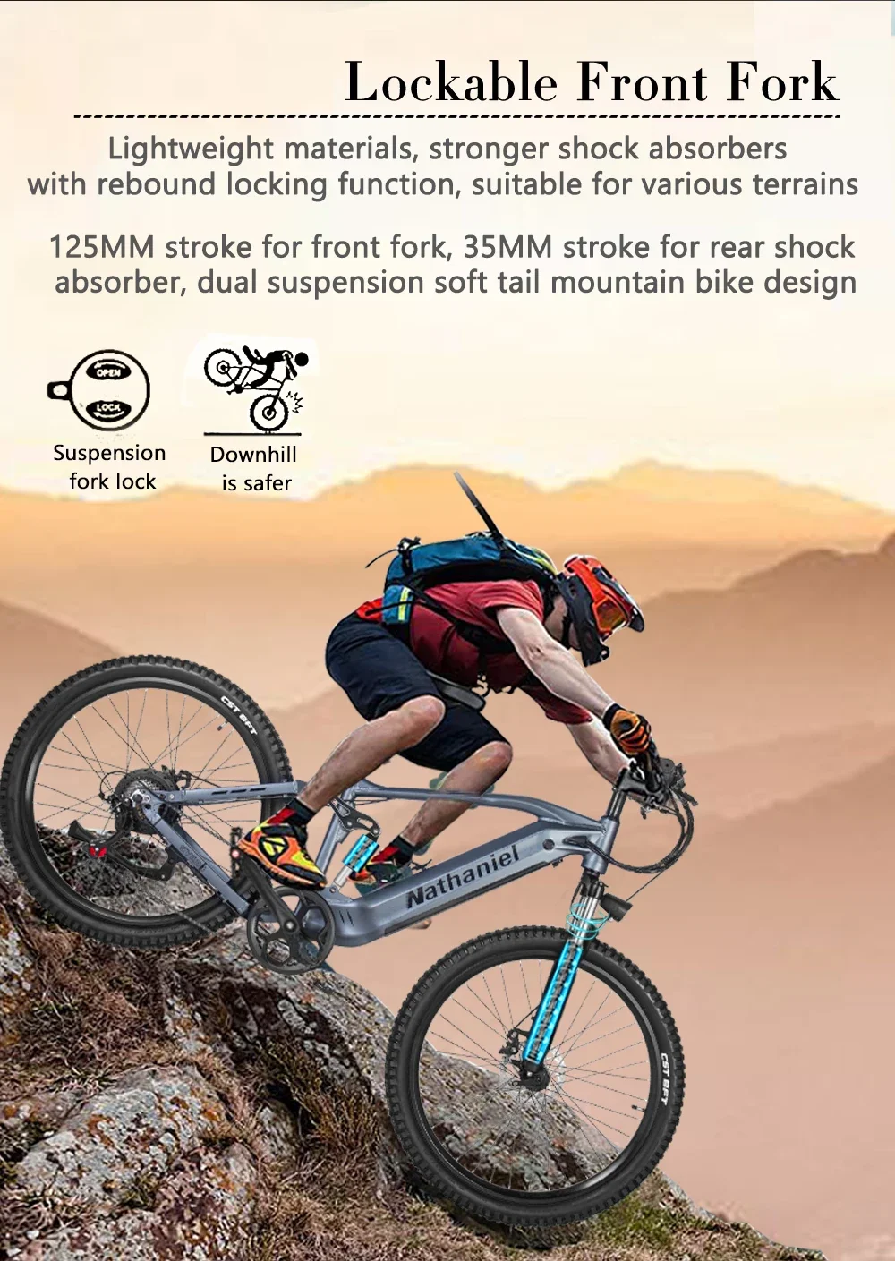 Ebike SYR03 Off-road electric mountain bike 1000W 48V 20AH Lithium battery powered bicycle soft tail shock absorption all-terrai