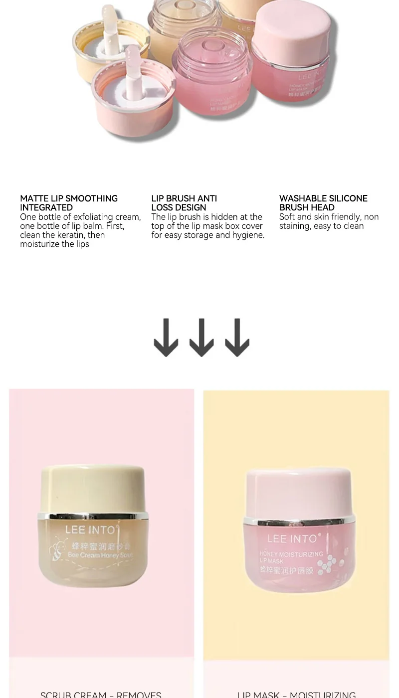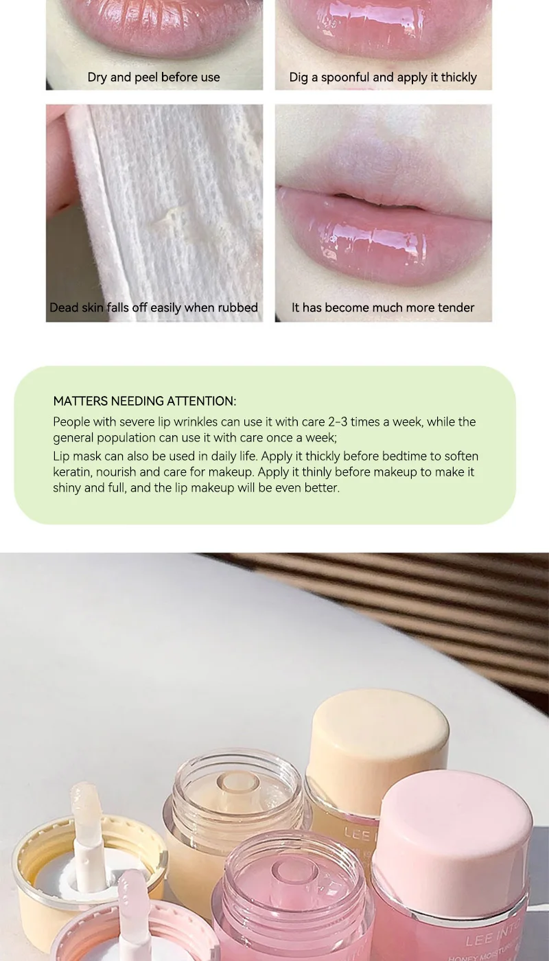 EEINTO Bee Essence Honey Nourishing Lip Care Kit — Gentle Lip Mask for Exfoliation, Softens and Removes Dead Skin