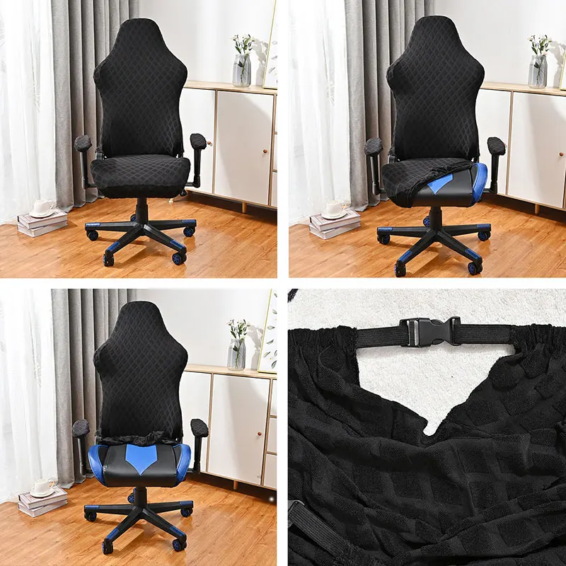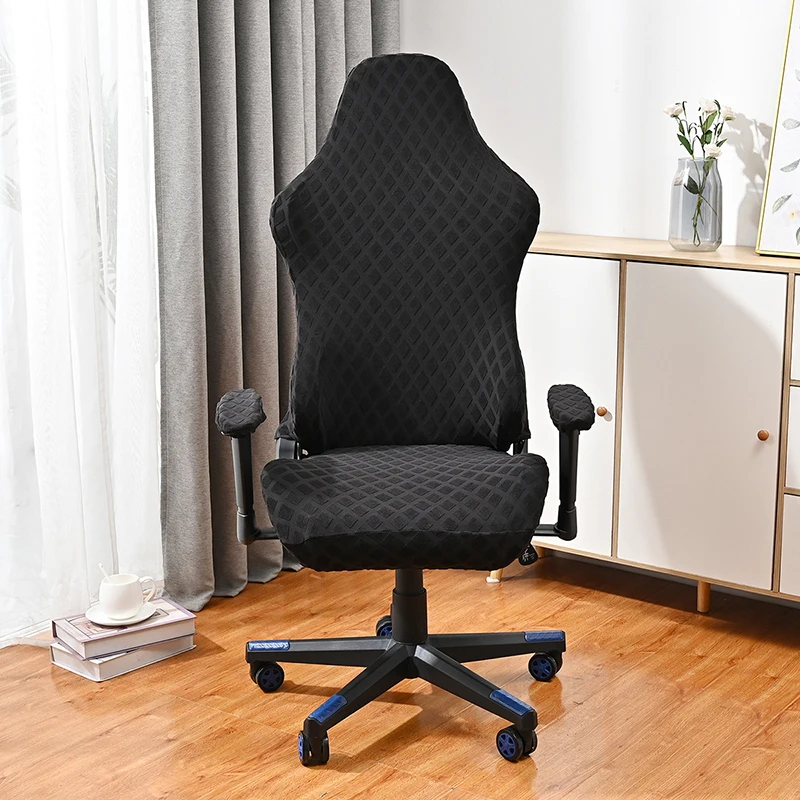 Elastic Fleece Jacquard Gaming Chair Cover Stretch Dustproof Rotating Seat Protect Cover for Home Office Solid Color