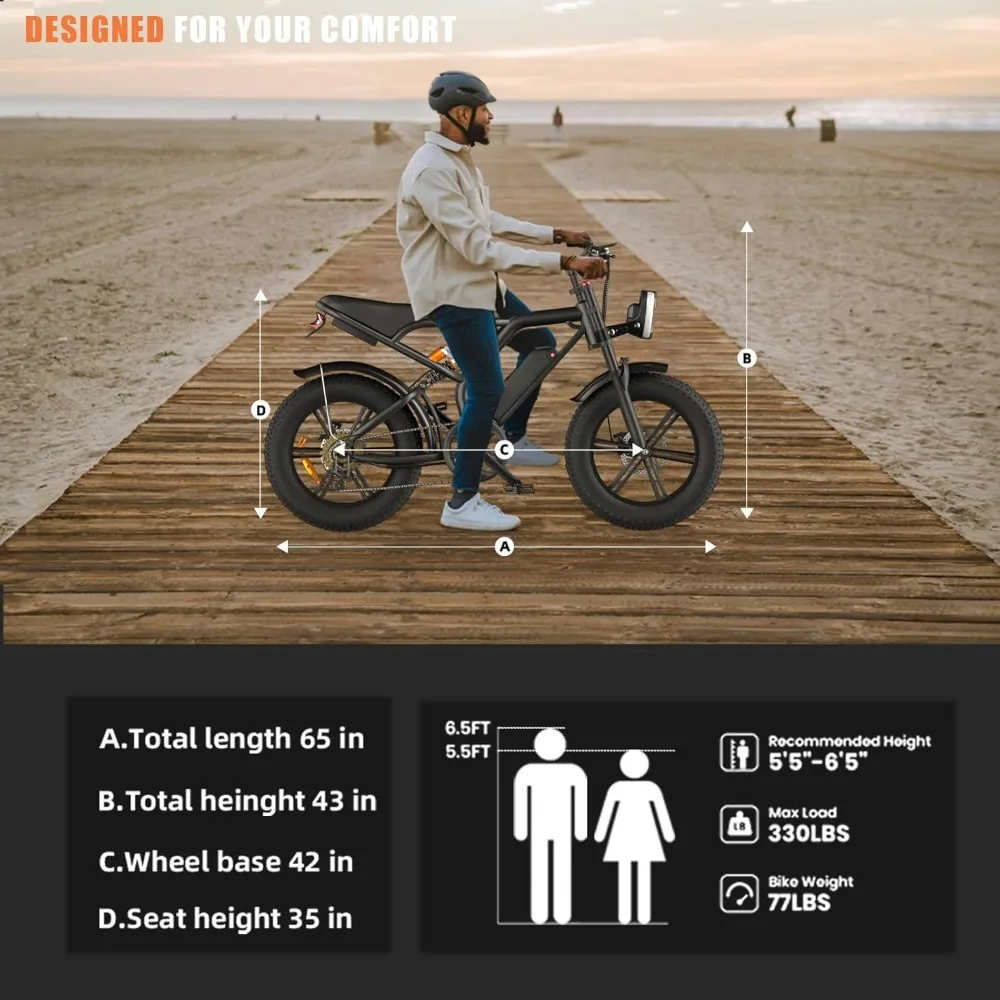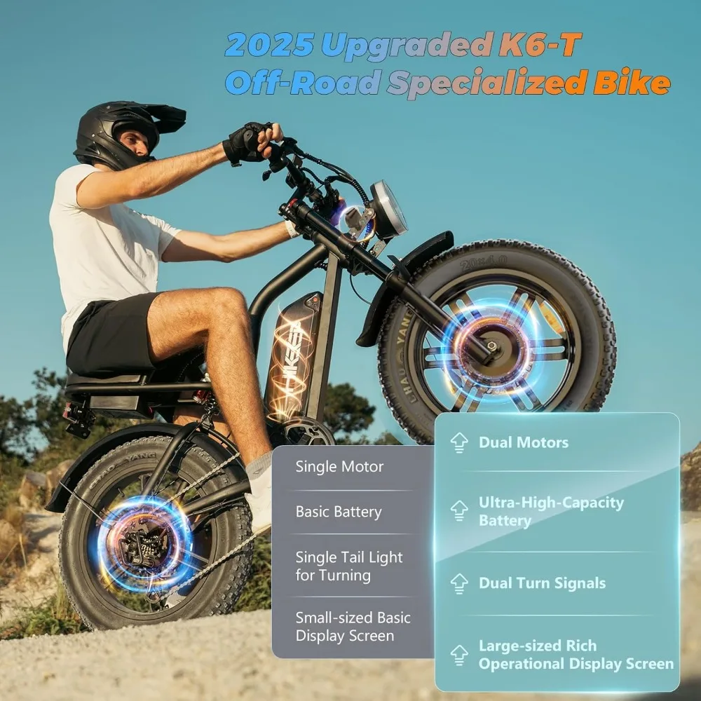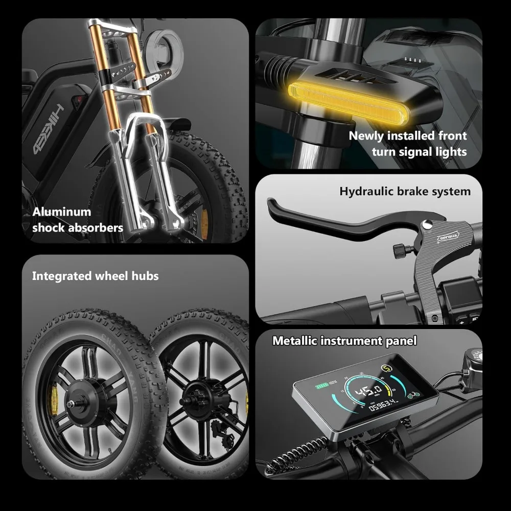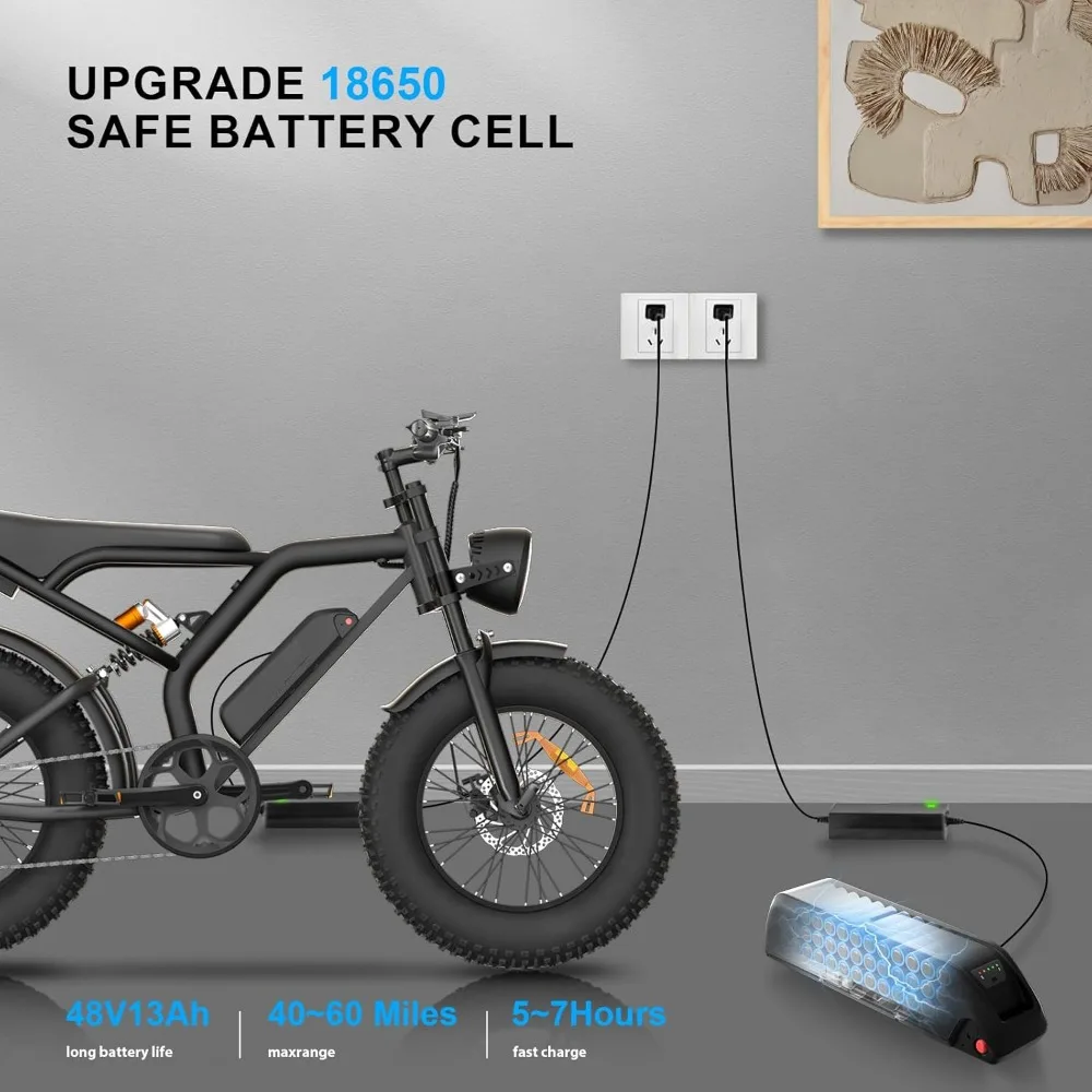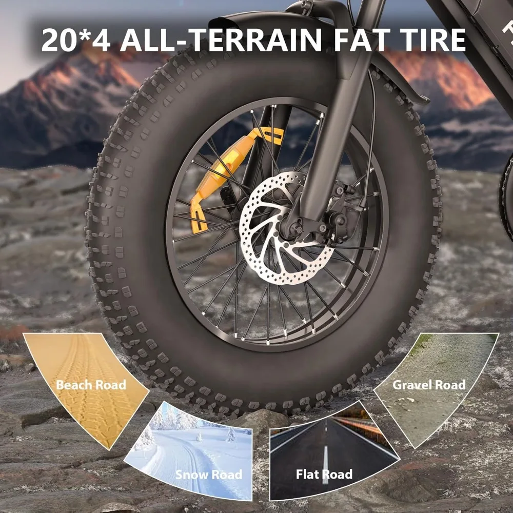 - 【Safety and Stability for Optimal Riding Experience 】 Our Dirt Electric Bike for Adults features a 5-stage full suspension system including two fork spring dampers, a seat spring damper and two 20 ” puncture-proof fat tires that absorb shocks and bumps. Conquer all terrains with confidence. Dual disc brake system reduces braking distance for safer and more reliable riding even in extreme weather conditions