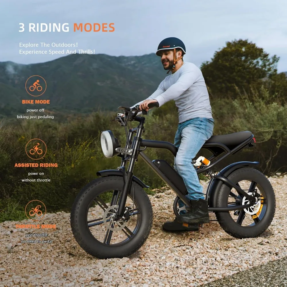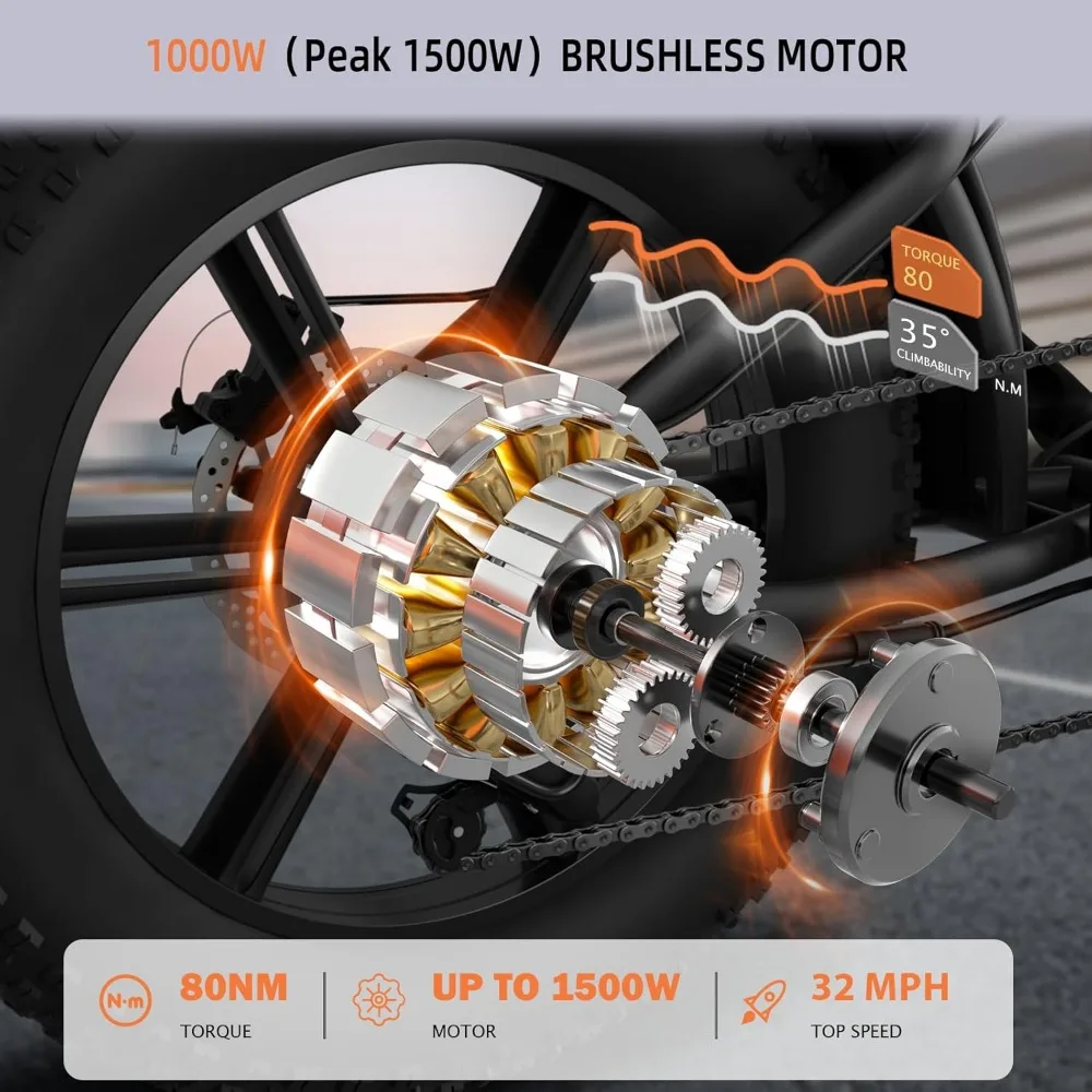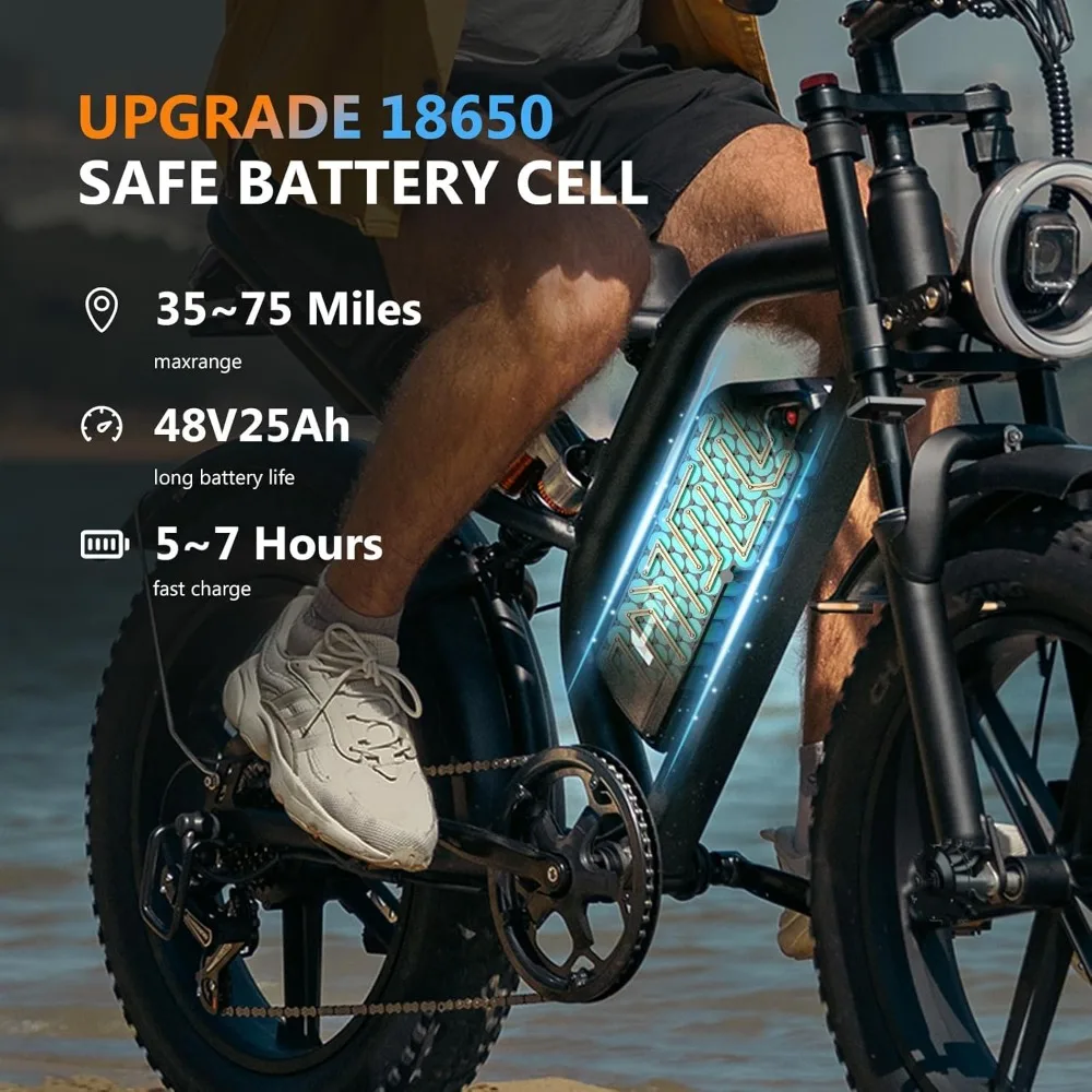 - 【 New Upgraded Electric Bike】 Adult electric bike is equipped with a 1000/2000W brushless gear motor. In electric mode, you can effortlessly reach speeds up to 28MPH , easily overcoming slopes up to 30 degrees. Fully charged in only 6-7H, capable of driving 37~110 miles on a single charge. You no longer have to worry about exhausting your energy during the exploration process