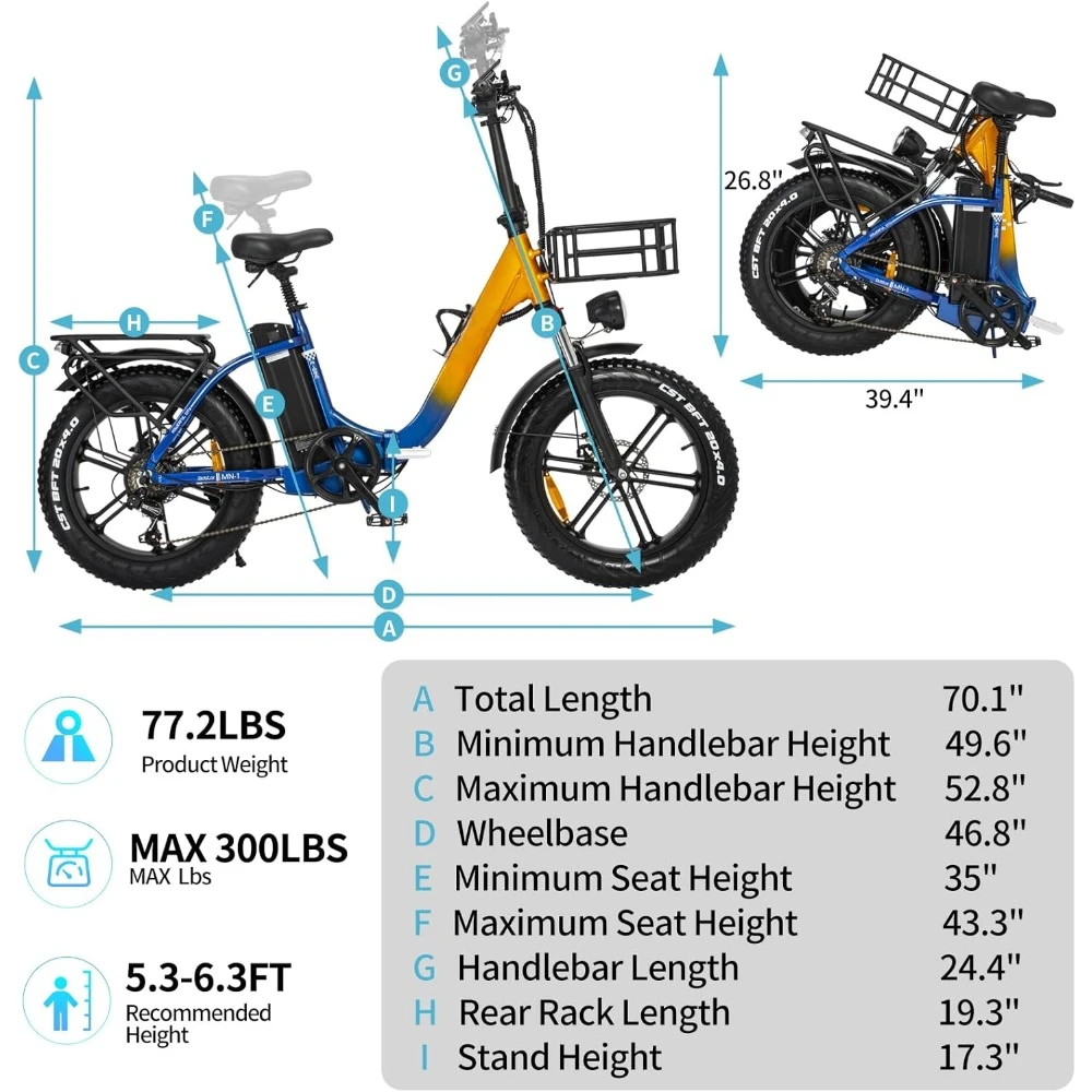 Optimal Comfort & Enhanced Safety: Upgraded with 20×4” wide puncture-resistant fat tires, the Bozin MN-20 delivers superior performance and a sleek appearance. Enjoy a smooth ride with adjustable front suspension and seatpost. Maintain control with dual disc brakes and experience precise shifting with the Shamano 7-gear system.Stay safe during nighttime rides with a bell, bright LED headlight, and brake light