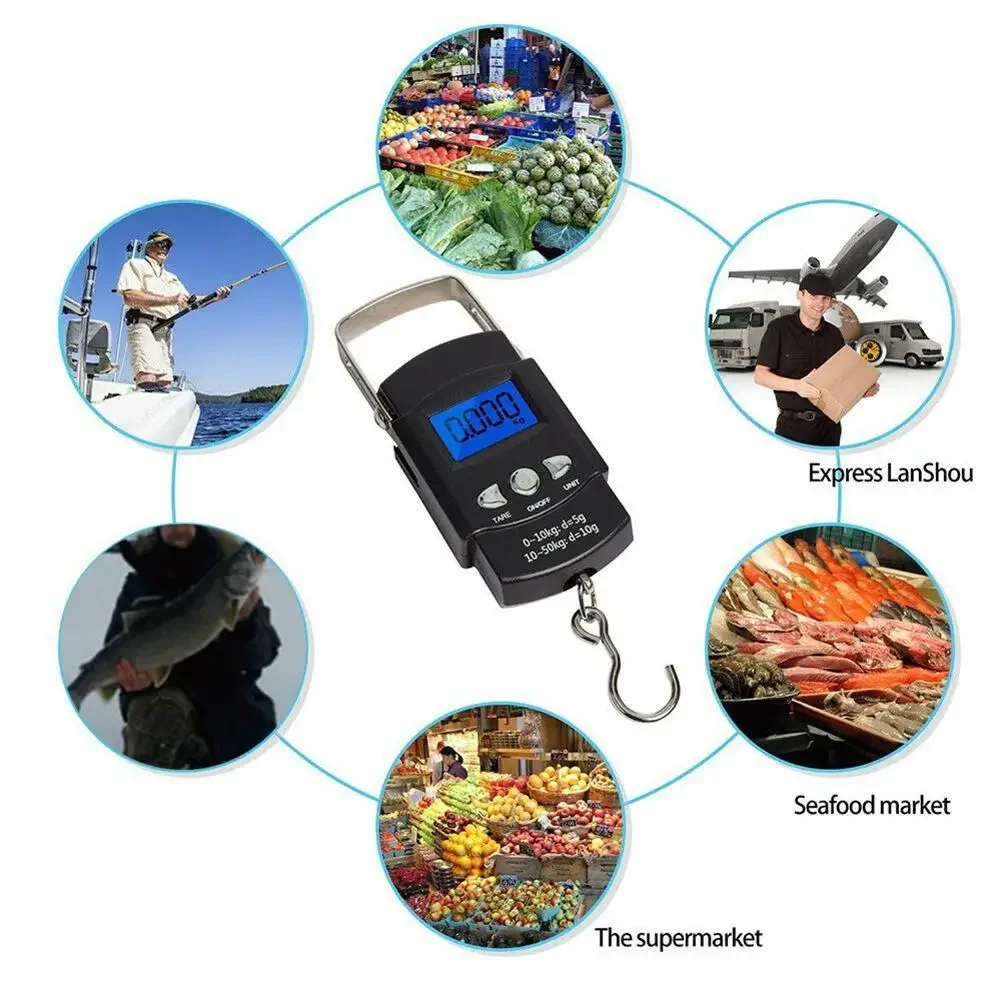 Electronic Digital Scale Rechargeable Hanging Scale 50kg 10g Fishing Luggage Travel Weighing Steelyard Hook Kitchen Weight