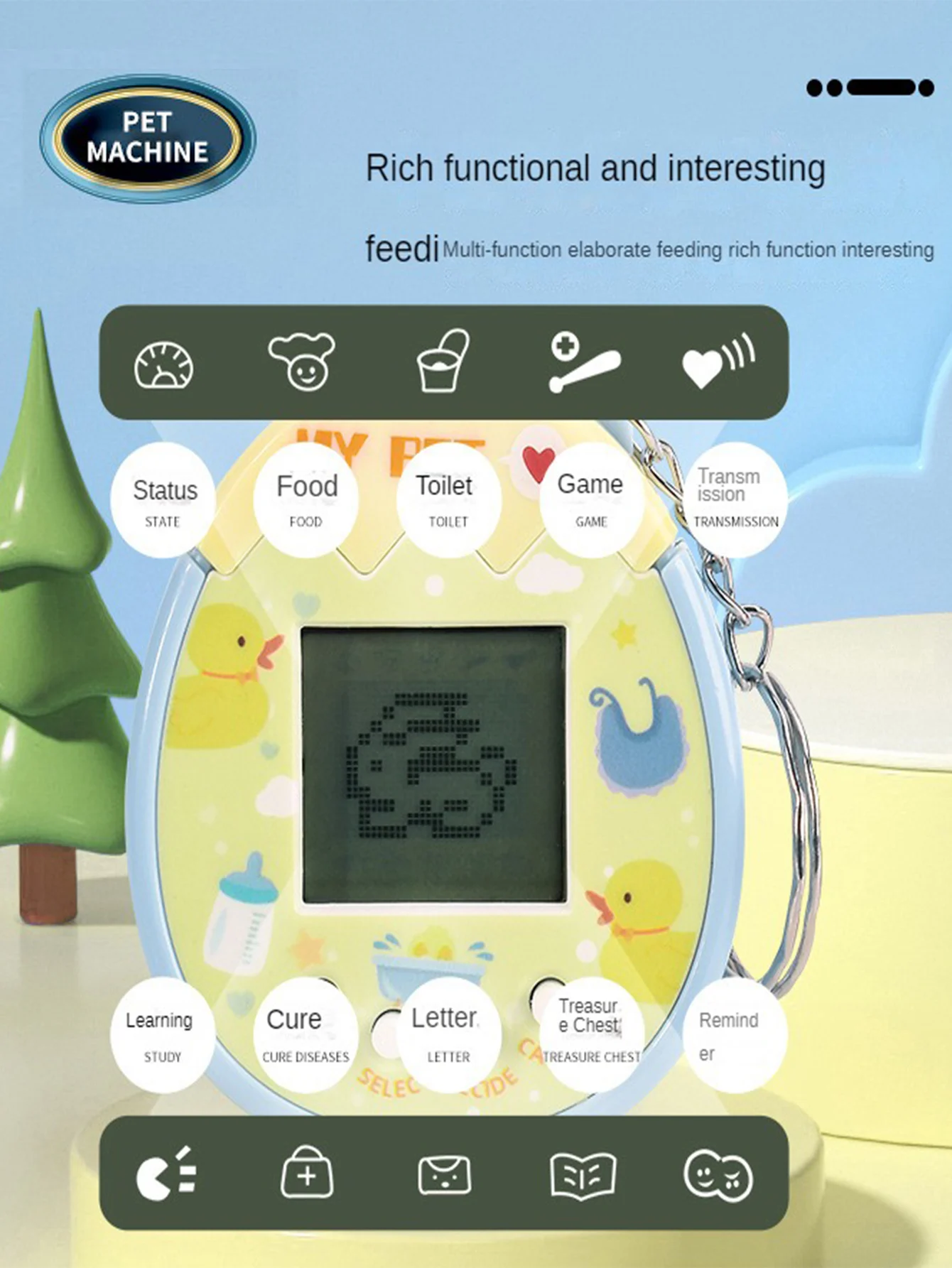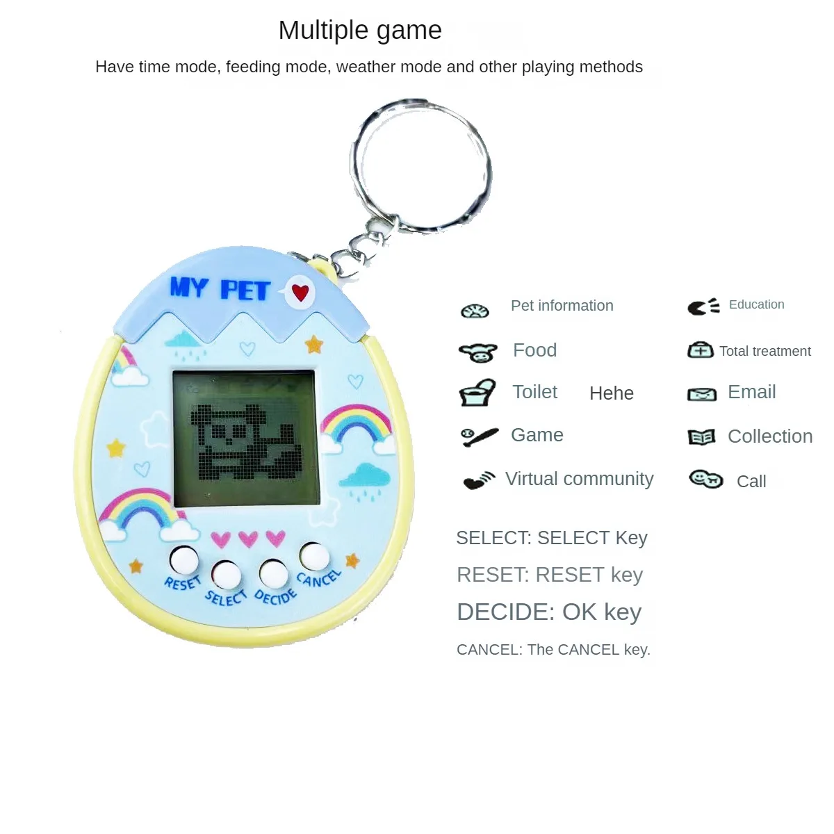 Electronic Pet Machine Virtual Feeding Animal Handheld Mini Game Machine, Funny Classic Nostalgic Toys, Keychain Decorations, No