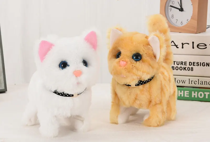 Electronic Plush Cat Toy Robot Animal Walking Running Kitten Shake Tail Cute Electric Kitty Pet For Children Birthday Xmas Gifts
