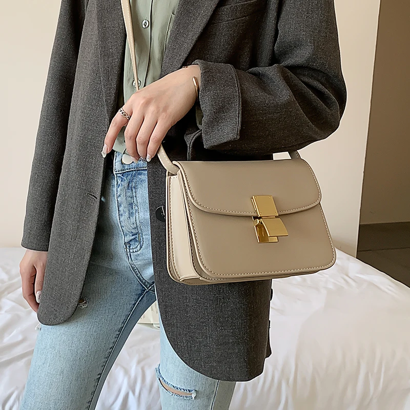 Elegant Small Square Bag Women’s Shoulder Crossbody Bag Premium Texture Versatile Buckle Handbag