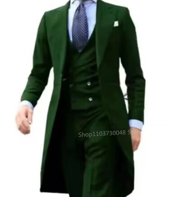 Elegant Solid Men Suits 3 Piece Fashion Peak Lapel Single Breasted Wedding Tailcoat Prom Party Male Suit (Blazer+Vest+Pants)