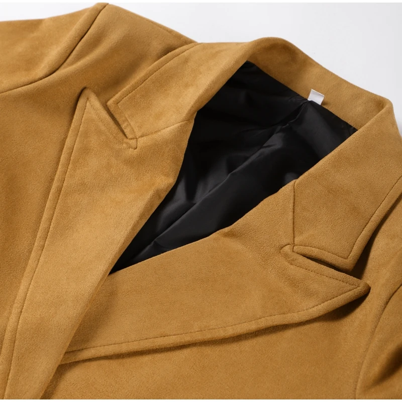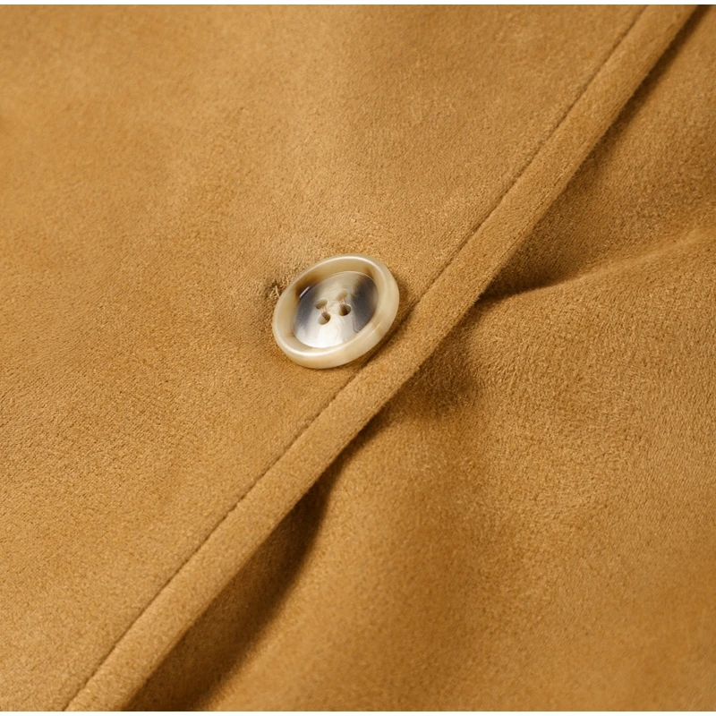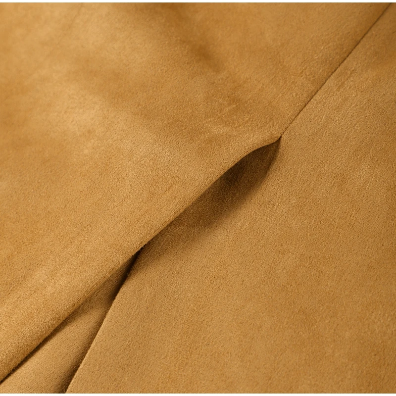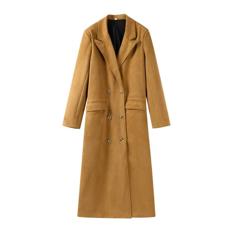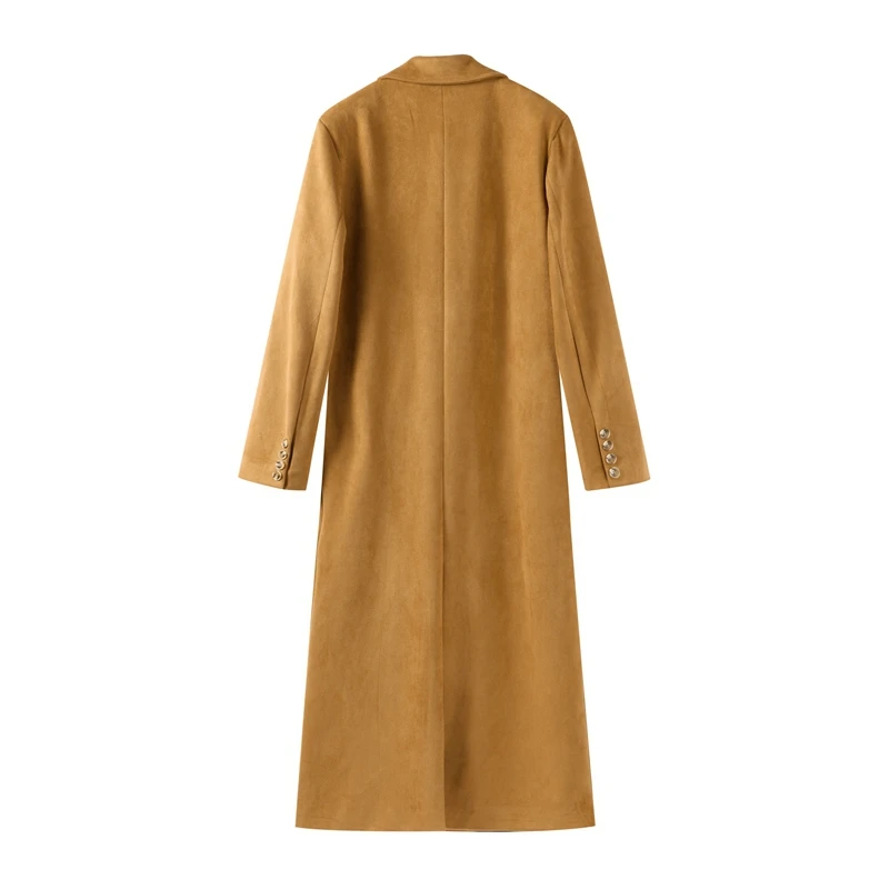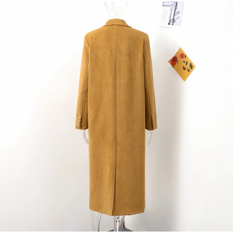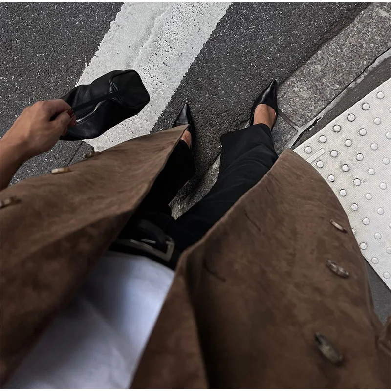 Elegant Suede Leather Women Long Windbreaker Coats Chic Lapel Double Breasted Lady Oversized Jackets 2024 Autumn Street Outwears