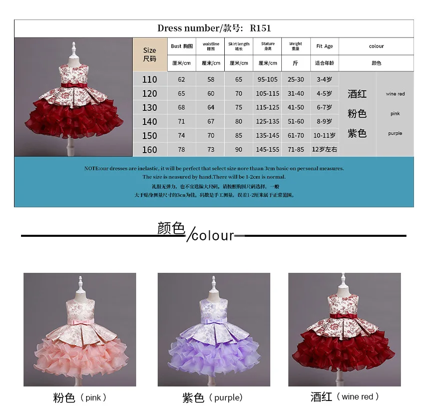 Childrens Ball Evening Dress Wedding Birthday Party One Year Princess skirt Lolita Piano Walk Show Performance Dress Flower Girl
